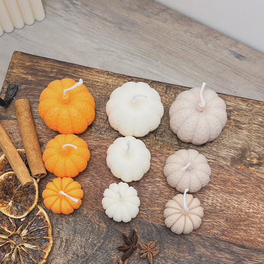 3 Decorative Orange Pumpkin Soy Candles - Halloween Home Decor