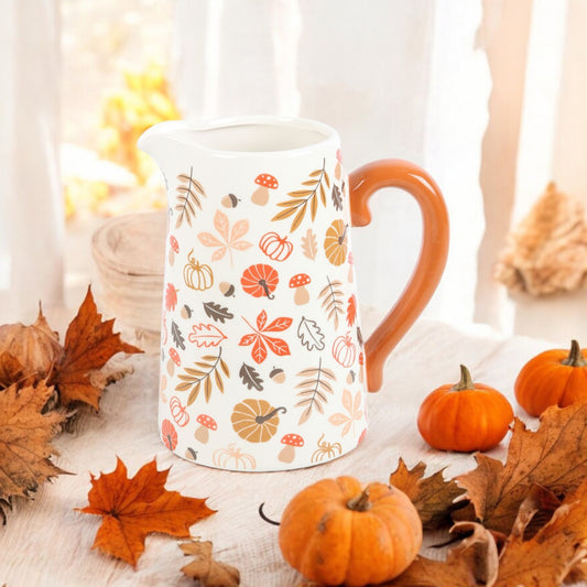 Autumnal Flower Vase with Pumpkins and Leaves - Autumn Flower Jug Vase - Halloween Home Decor