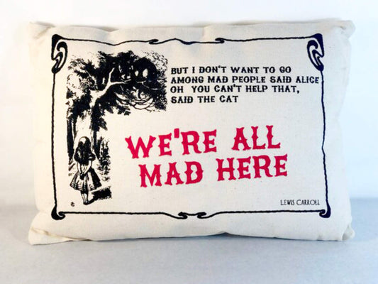 Alice in Wonderland Cheshire Cat Cushion - We Are All Mad Here