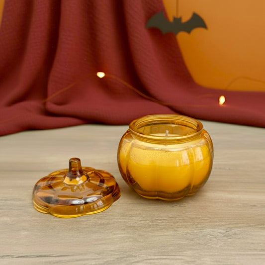 Glass Pumpkin Candle in Pot - Vanilla Scented Autumn Candle