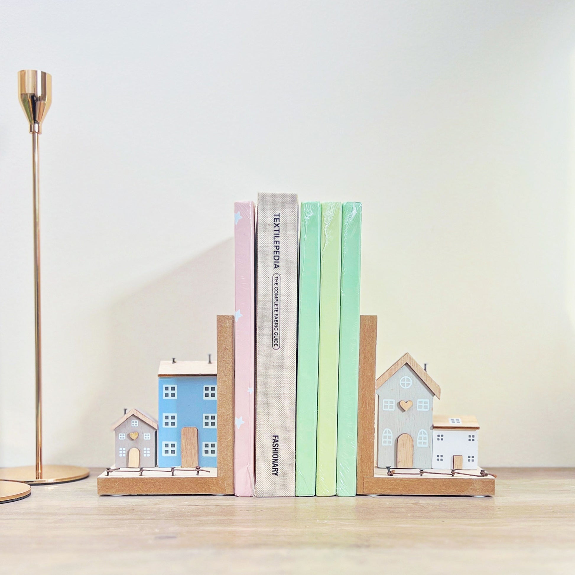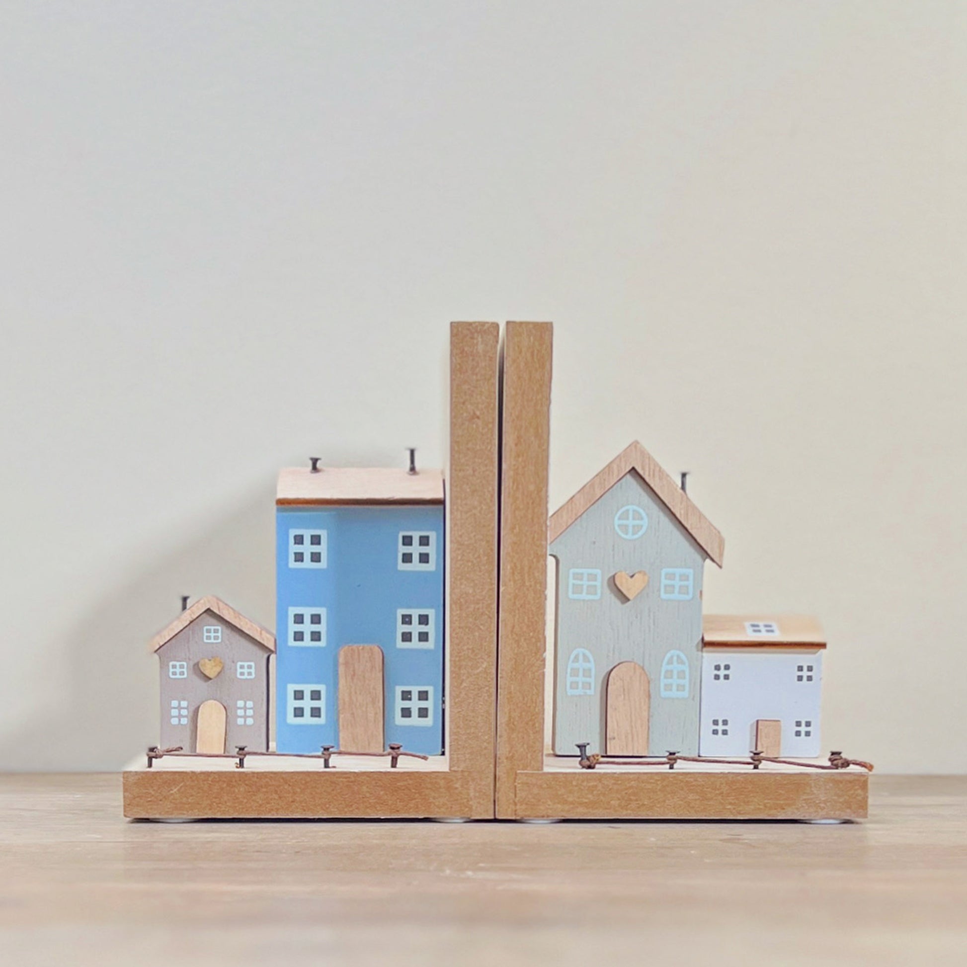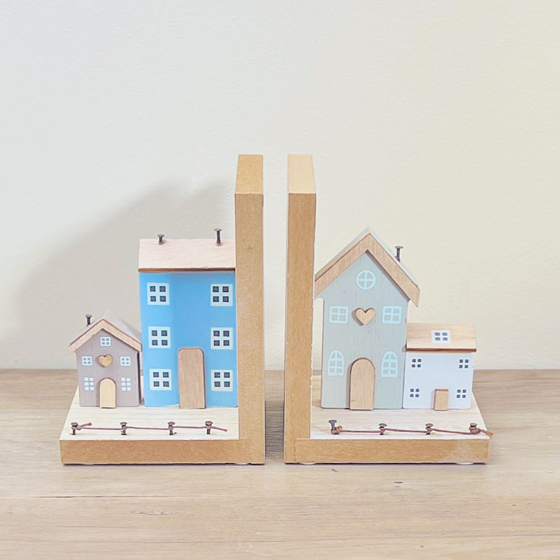 Amsterdam Canal House Inspired Wooden Bookend Pair