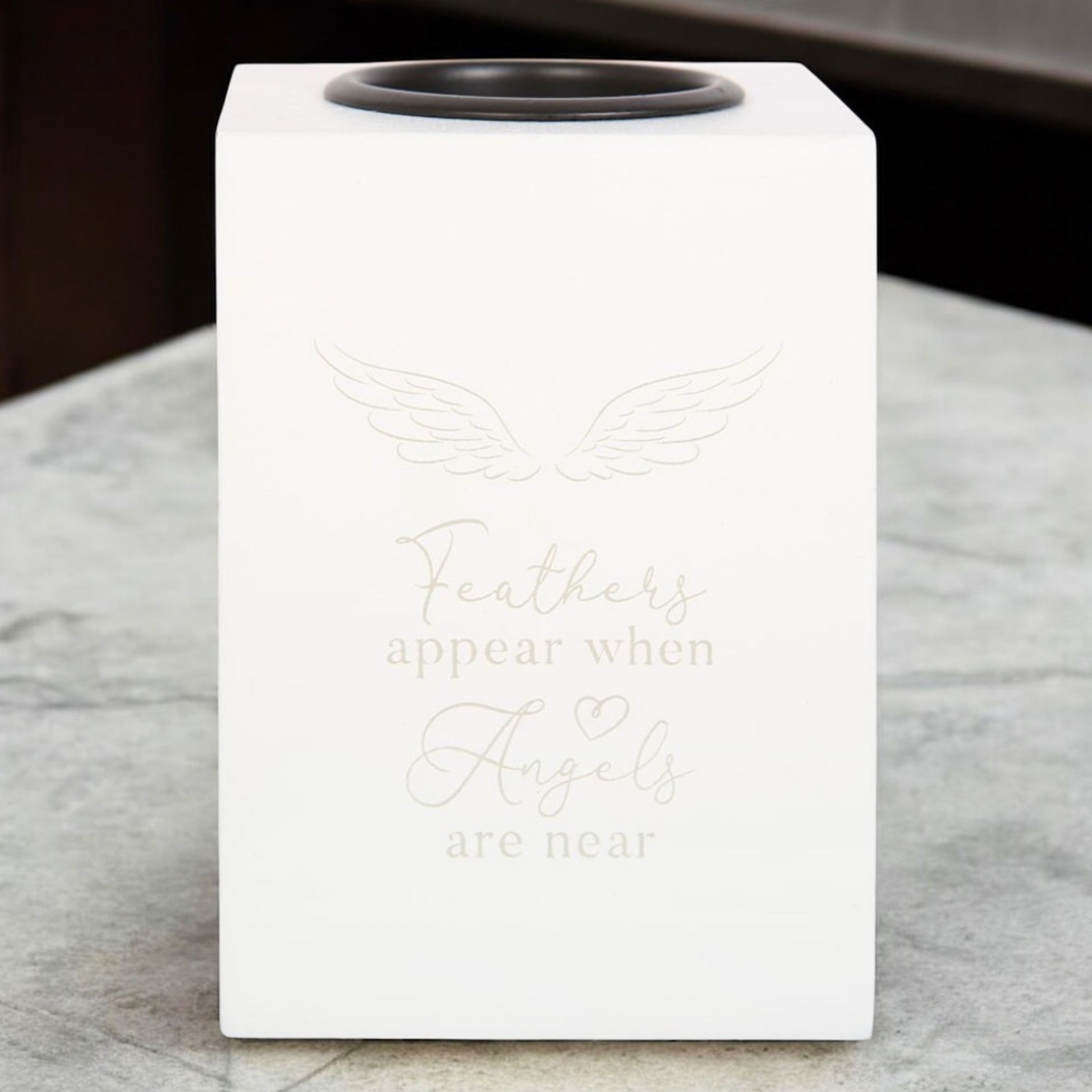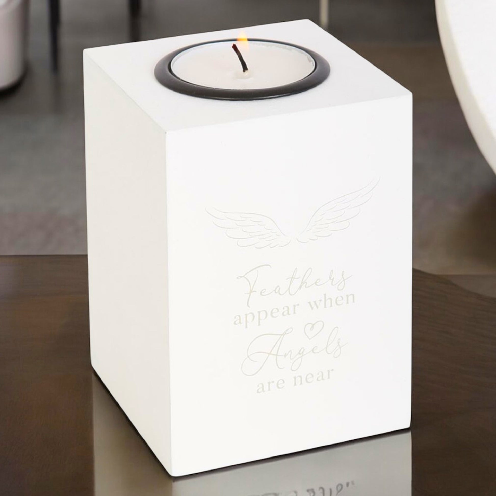 Honor the memory of loved ones with our elegant angel wing remembrance tealight holder. Crafted in crisp white, this memorial candle holder features the heartfelt message “Feathers appear when angels are near” and a delicate angel wing design, offering comfort and peace in times of loss.