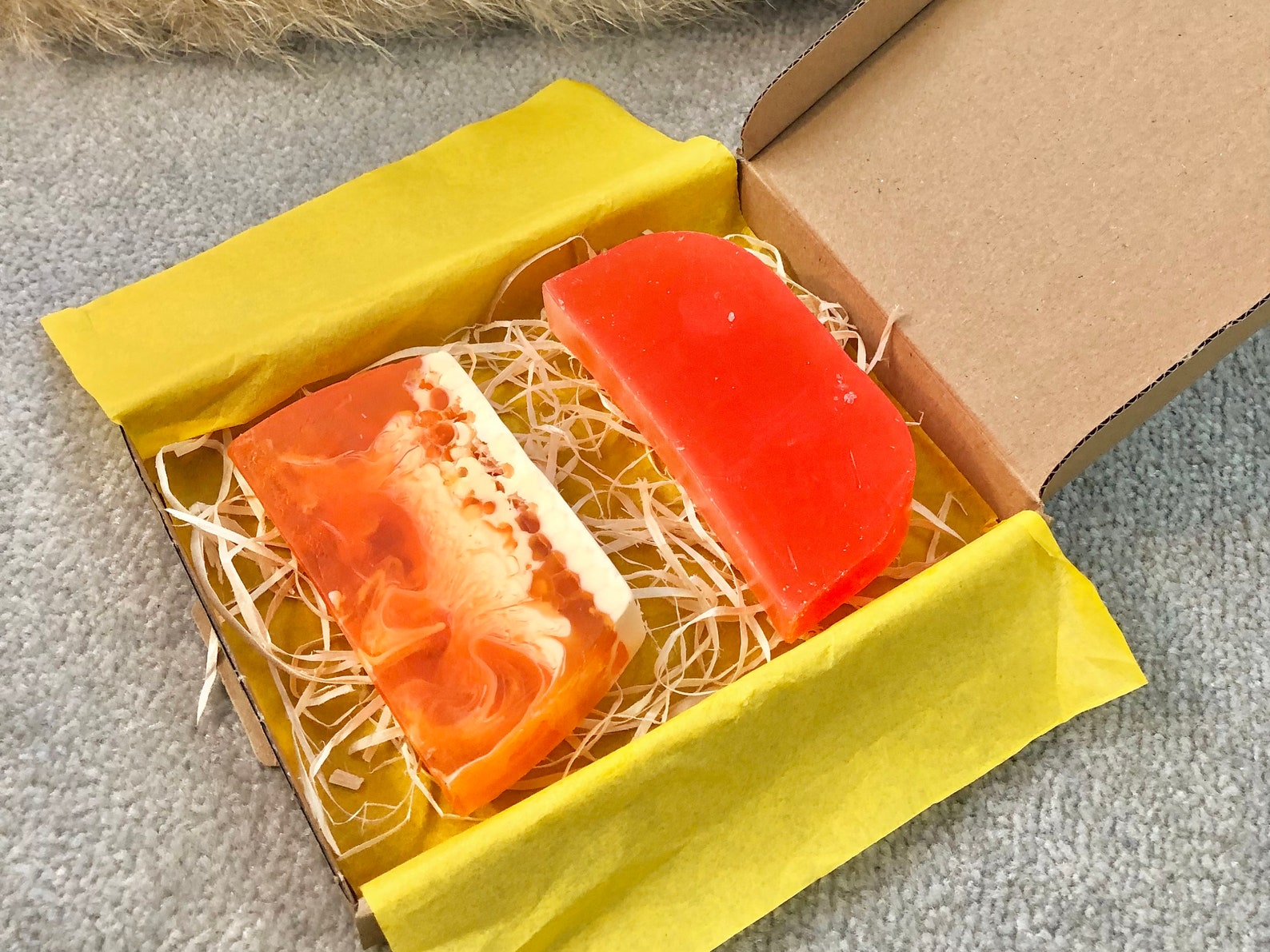 The soap bars included in this set are gorgeously decadent and all handmade by our team here in the UK and come in several scents including rose petals, honey & citrus fruits.