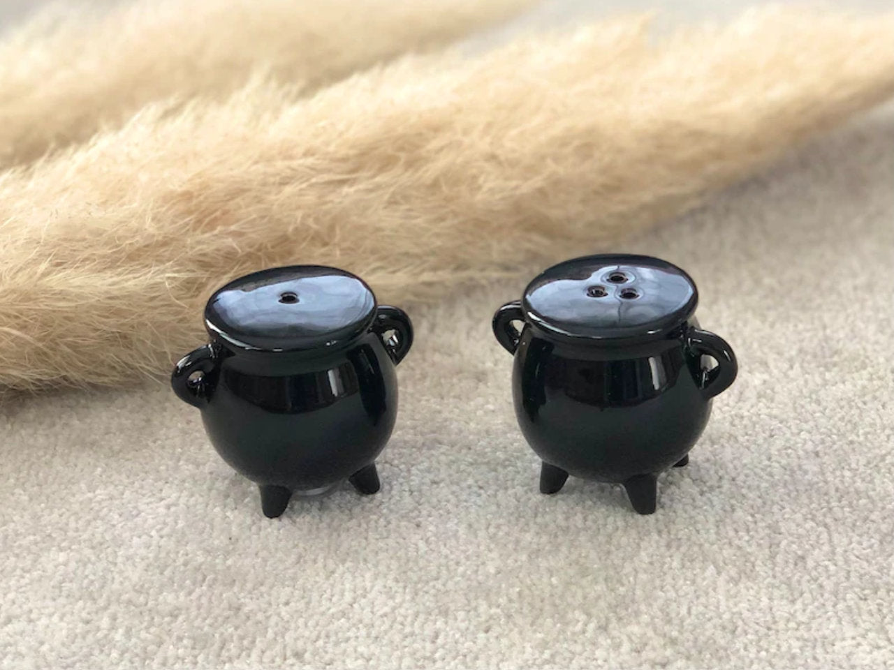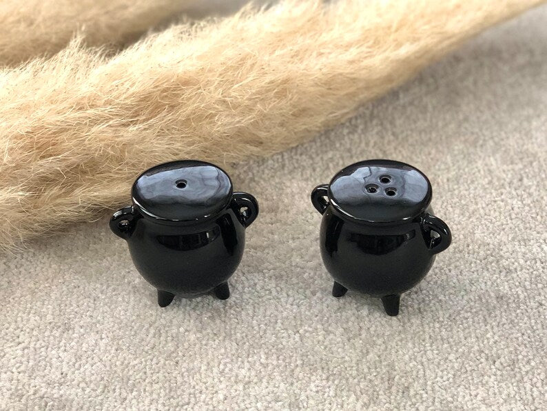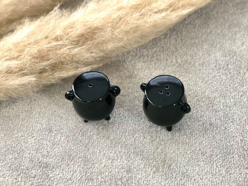 Black Cruet Set - Cauldron Inspired Salt & Pepper Shakers