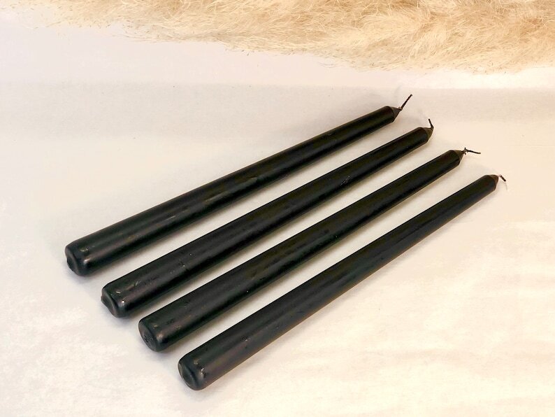 This pack of 4 black dinner candles 'bleed' when they are lit. As the black wax melts, it exposes the red wax underneath and as the melting wax falls and drips down the stem of the candle, it gives he illusion that these dinner taper candles are bleeding - this is why they have been given the name 'vampire tears candles'. These black and red taper candles are the perfect unique and spooky addition to any dinner table and are a great way to entertain guests with something a little bit different as they join you for dinner!