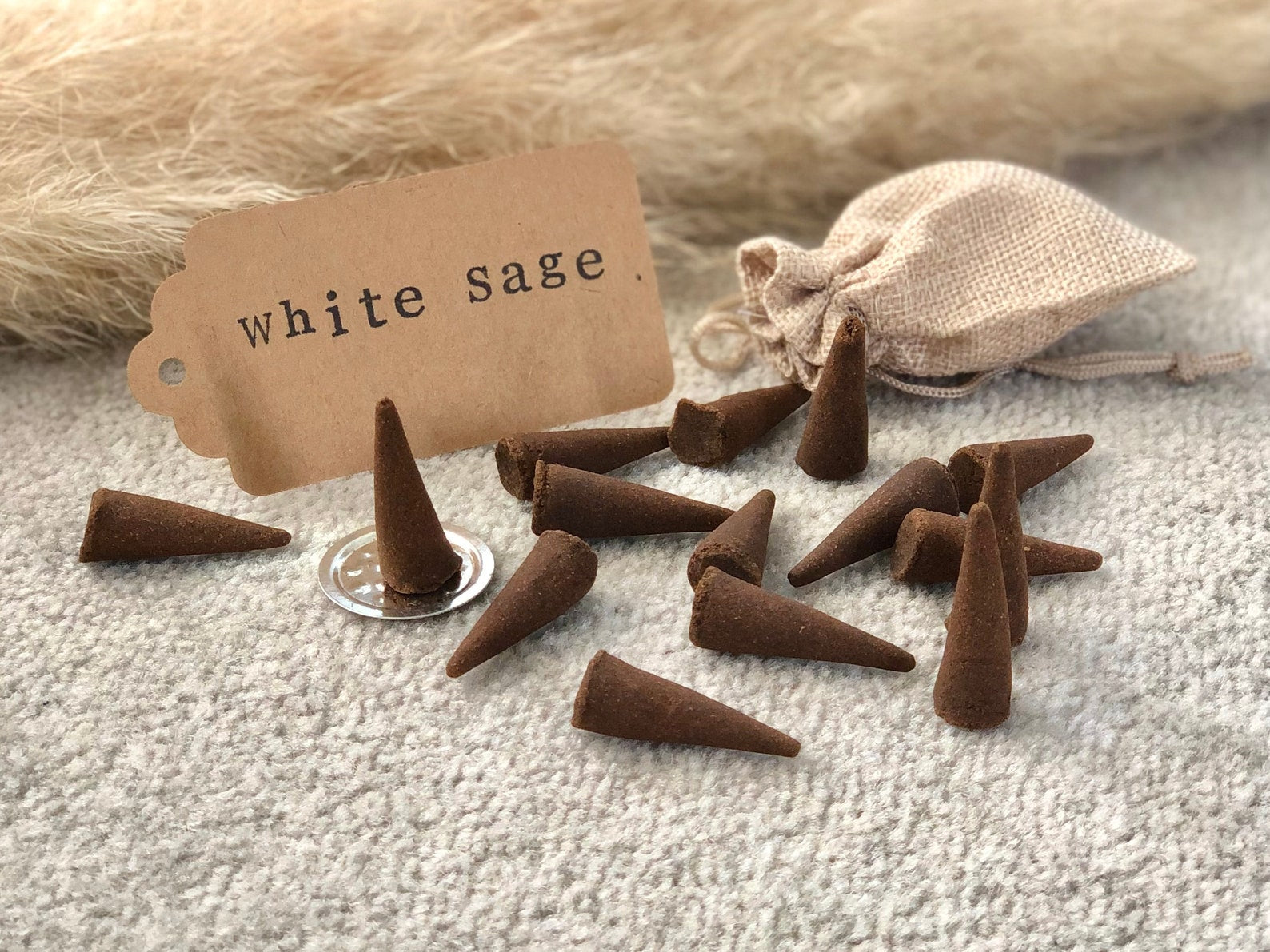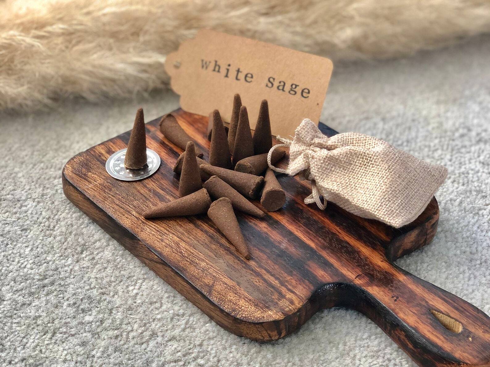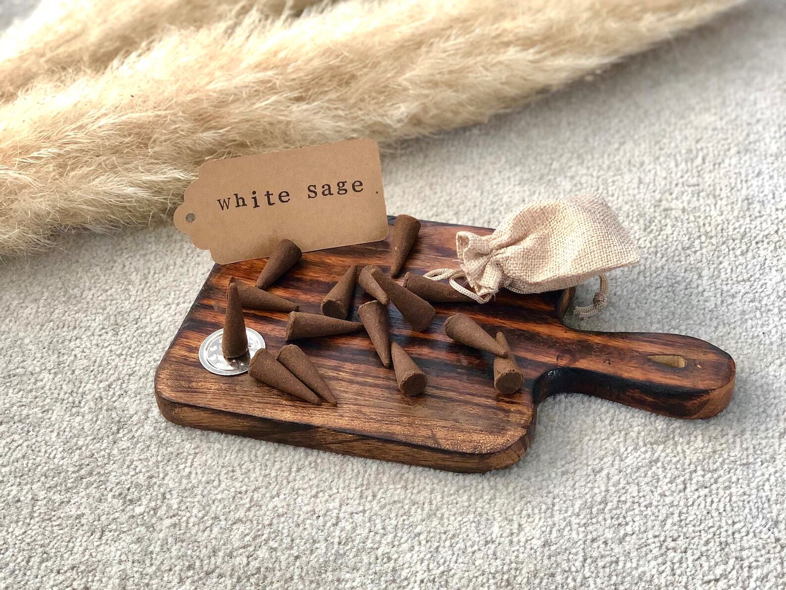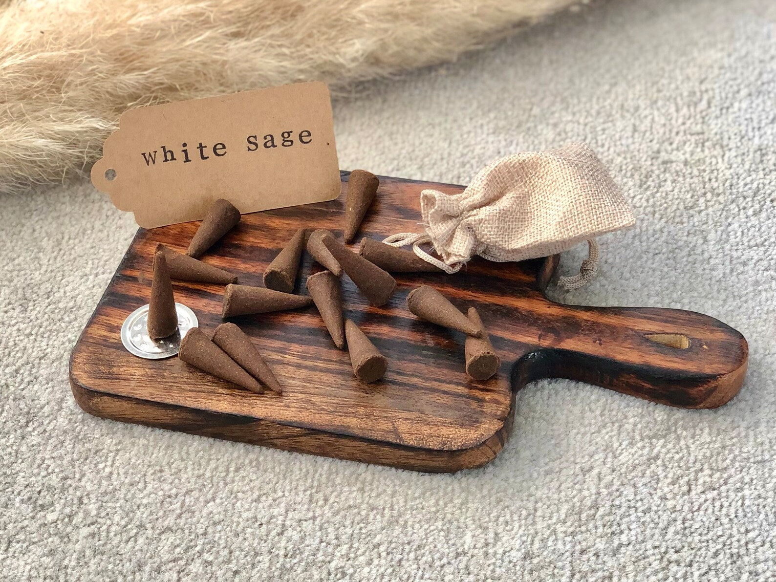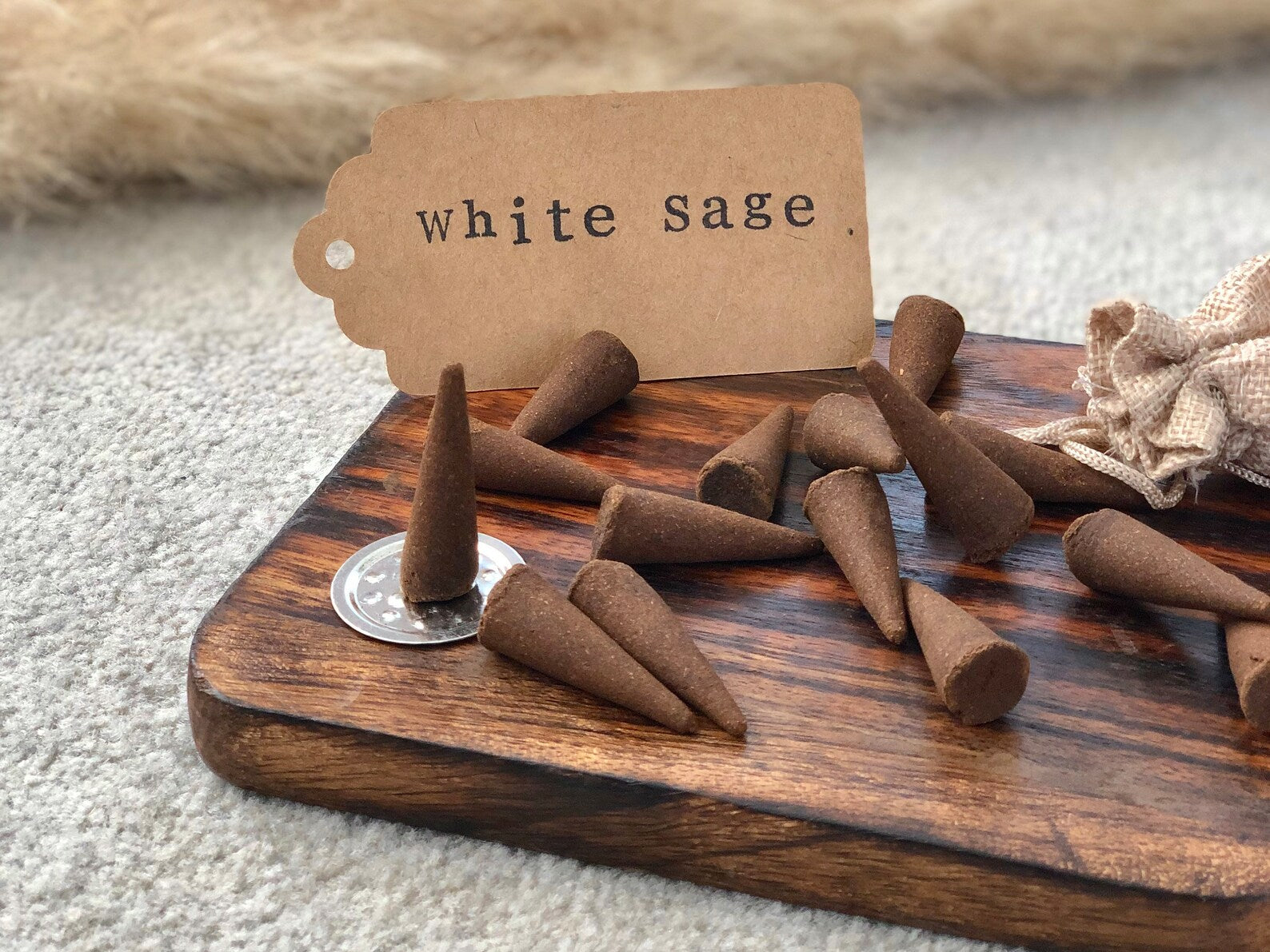 Handmade all natural Californian White Sage scented incense cones which are a perfect way to freshen your home and cleanse the atmosphere around you. The incense has a gentle smell and is known for its calming effects, it's a soothing smell which is really refreshing and will have your home smelling wonderful.