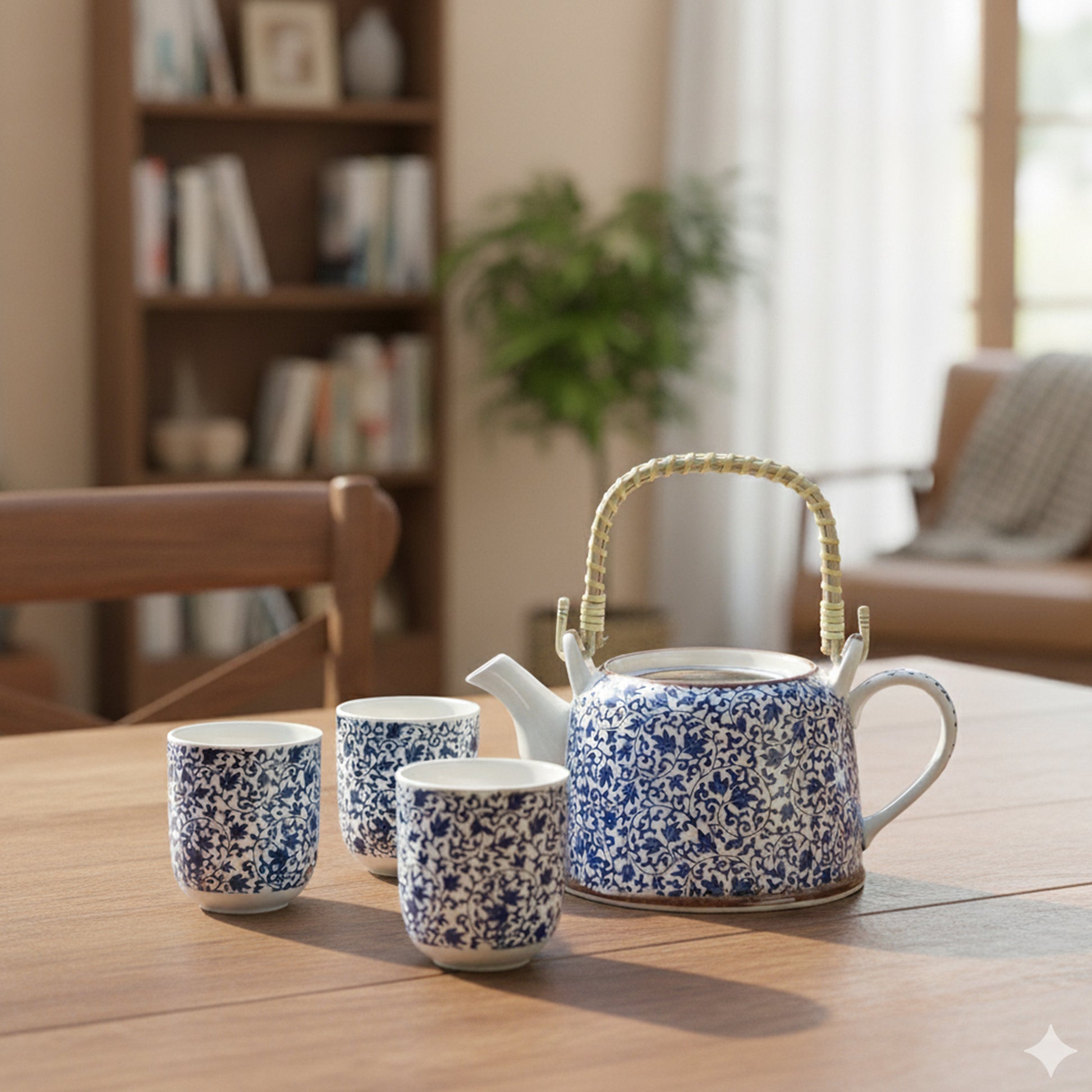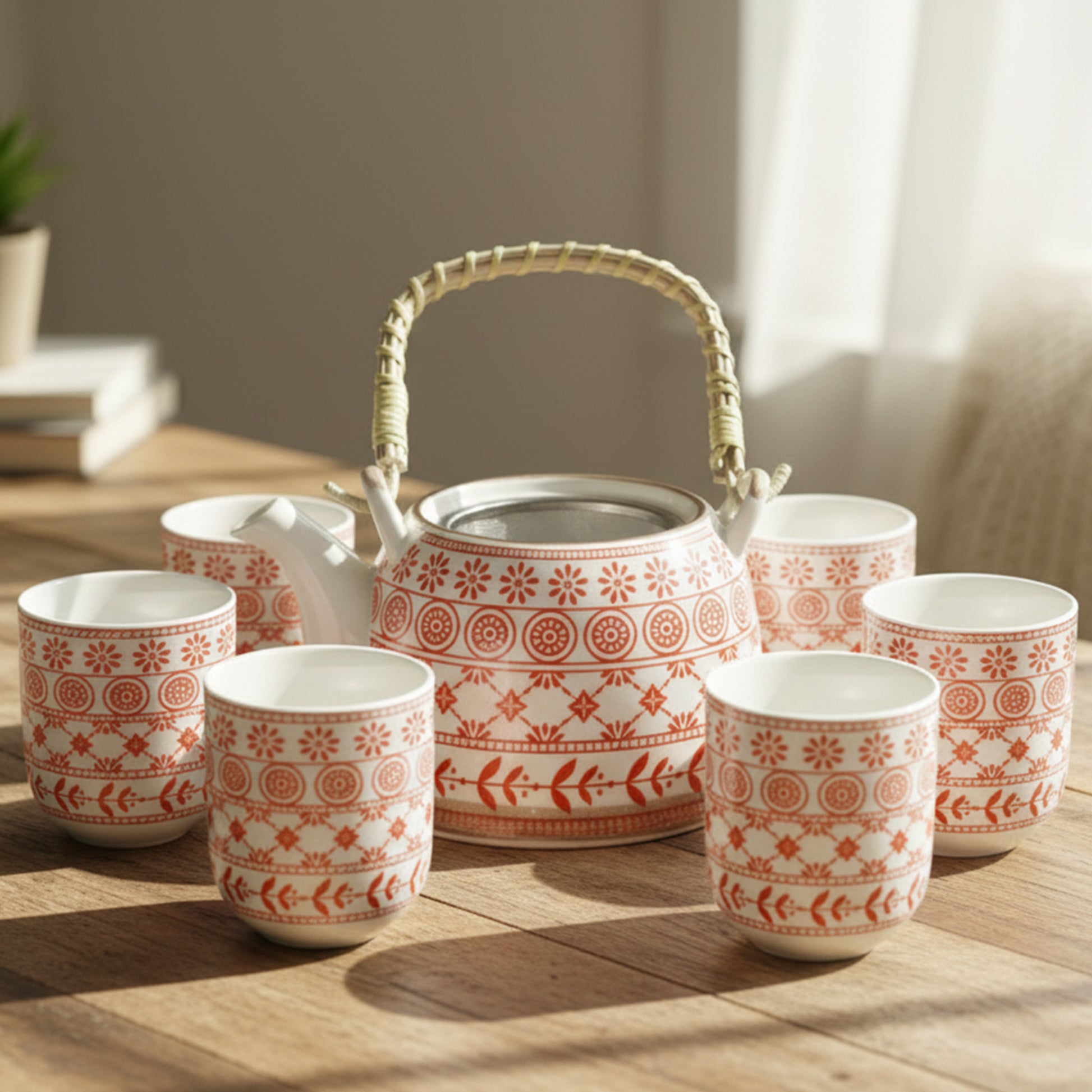 Traditional Herbal Tea Pot Set with Teapot with Tea Infuser & 6 Matching Tea Cups - Herbal Tea Gift Set