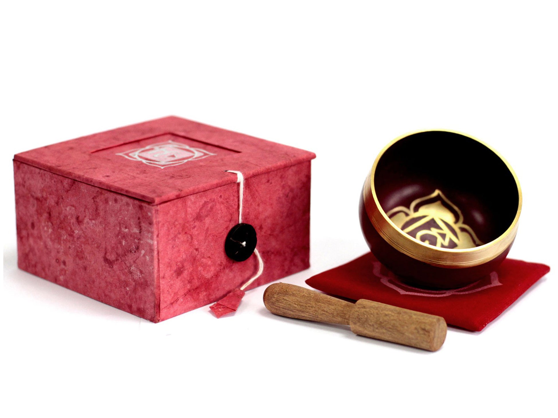 These handmade brass singing bowl sets come in a wonderful and ornate gift box which makes them a thought present for a loved one. The set includes a brass chakra singing bowl, an authentic and decorative Buddha themed cushion and a natural wooden stick to make the bowls sing with.