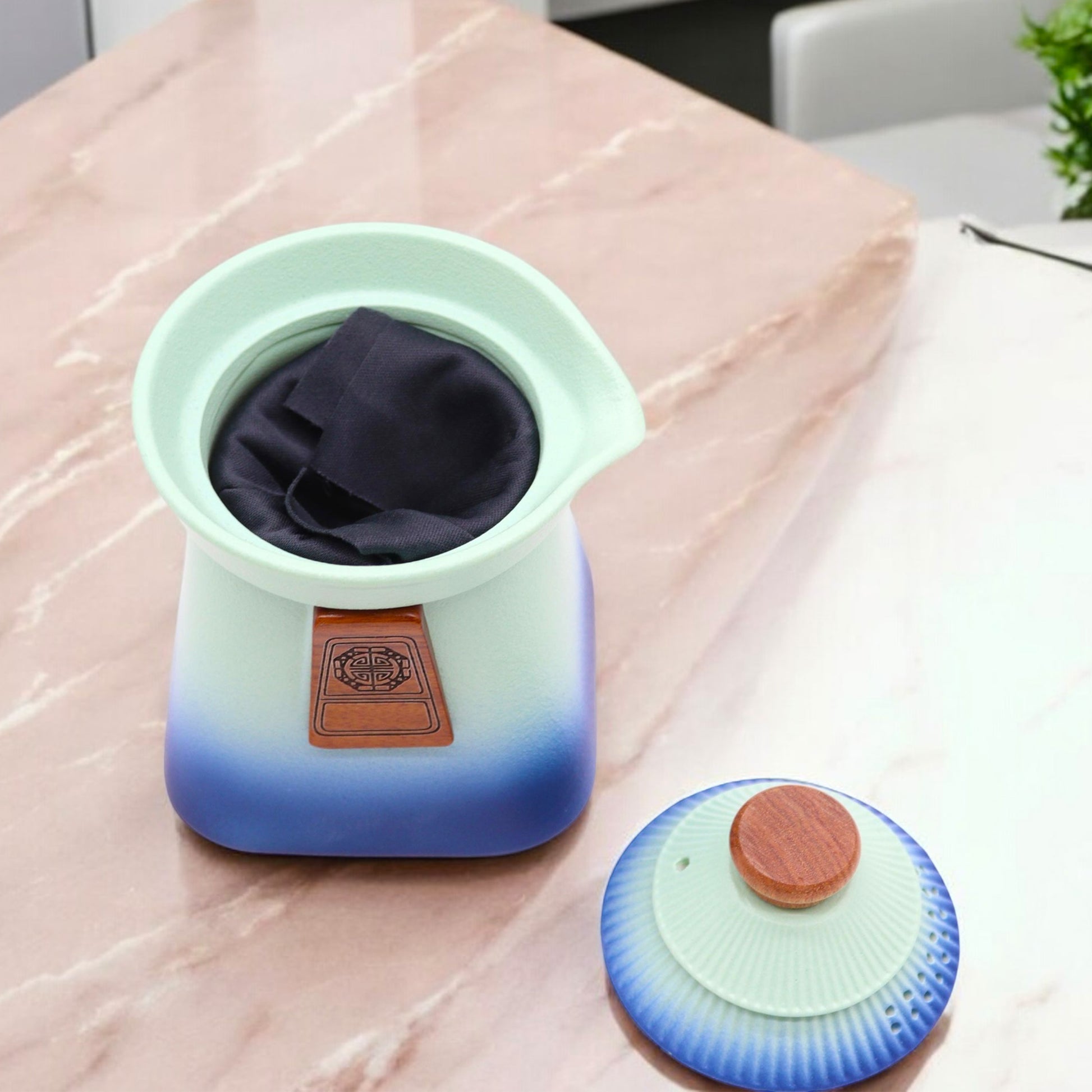 This ceramic tea set is not only a delightful addition to your home but also makes a great gift for tea lovers. To ensure safe storage, the set comes with a protective pouch, making it perfect for gifting or keeping your tea set in pristine condition.