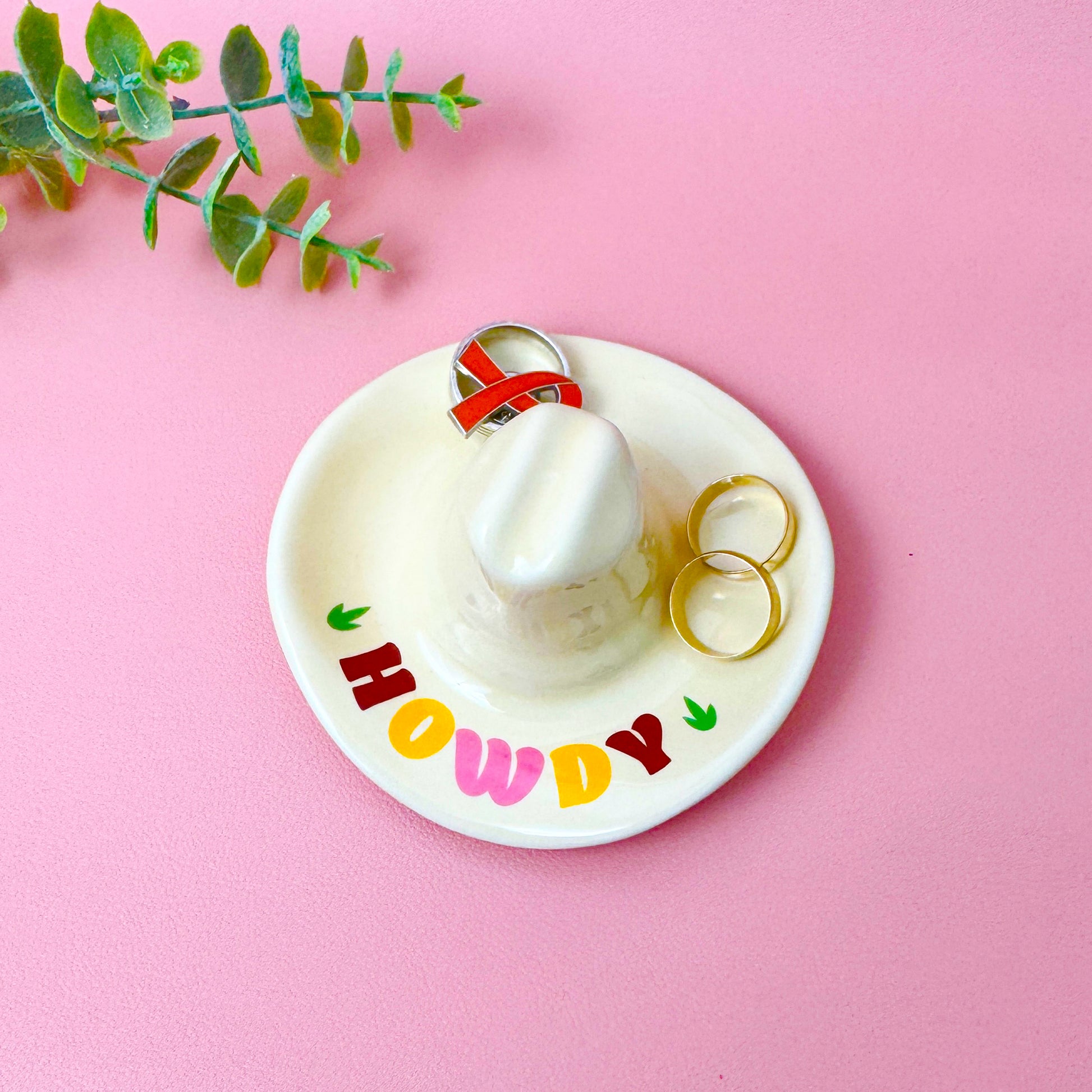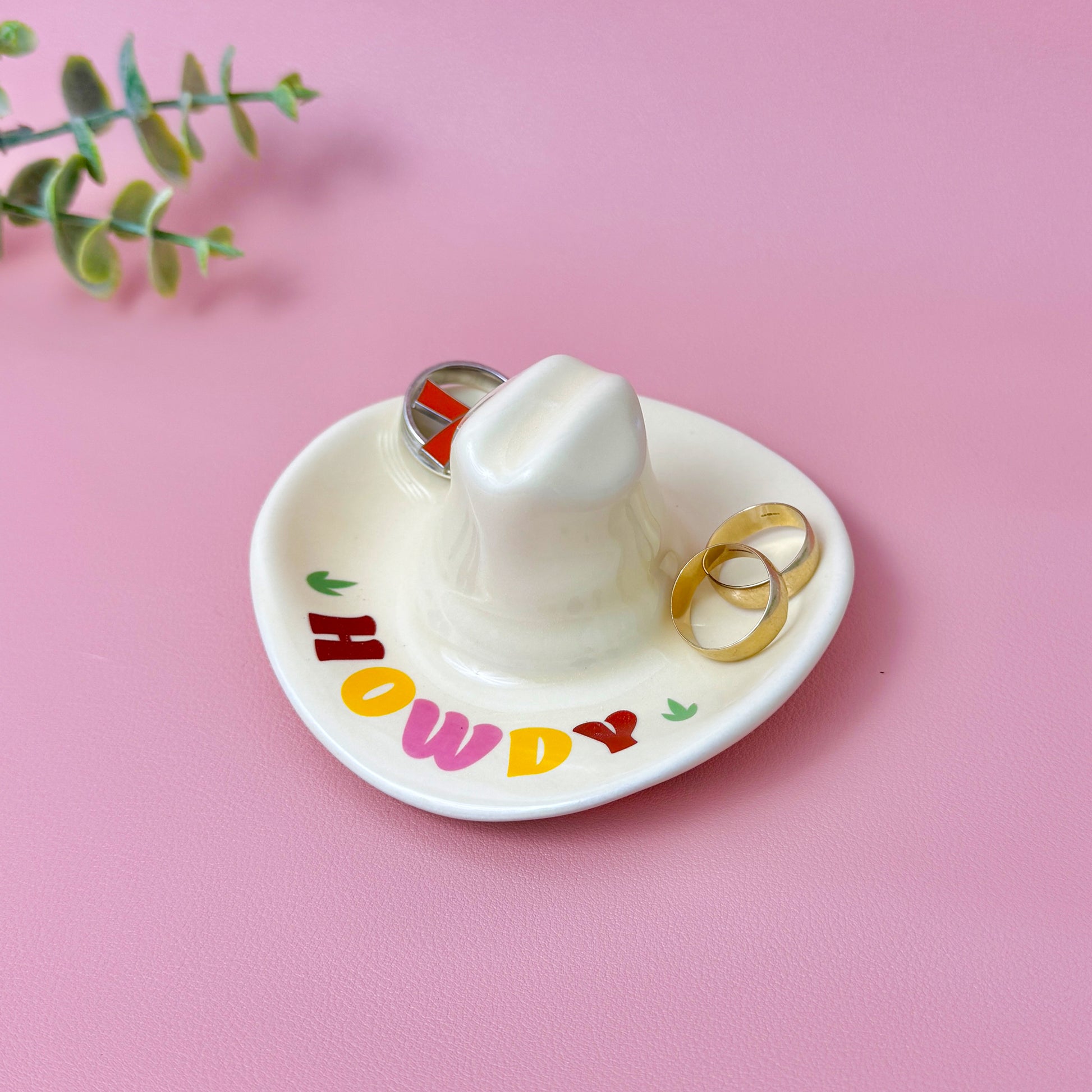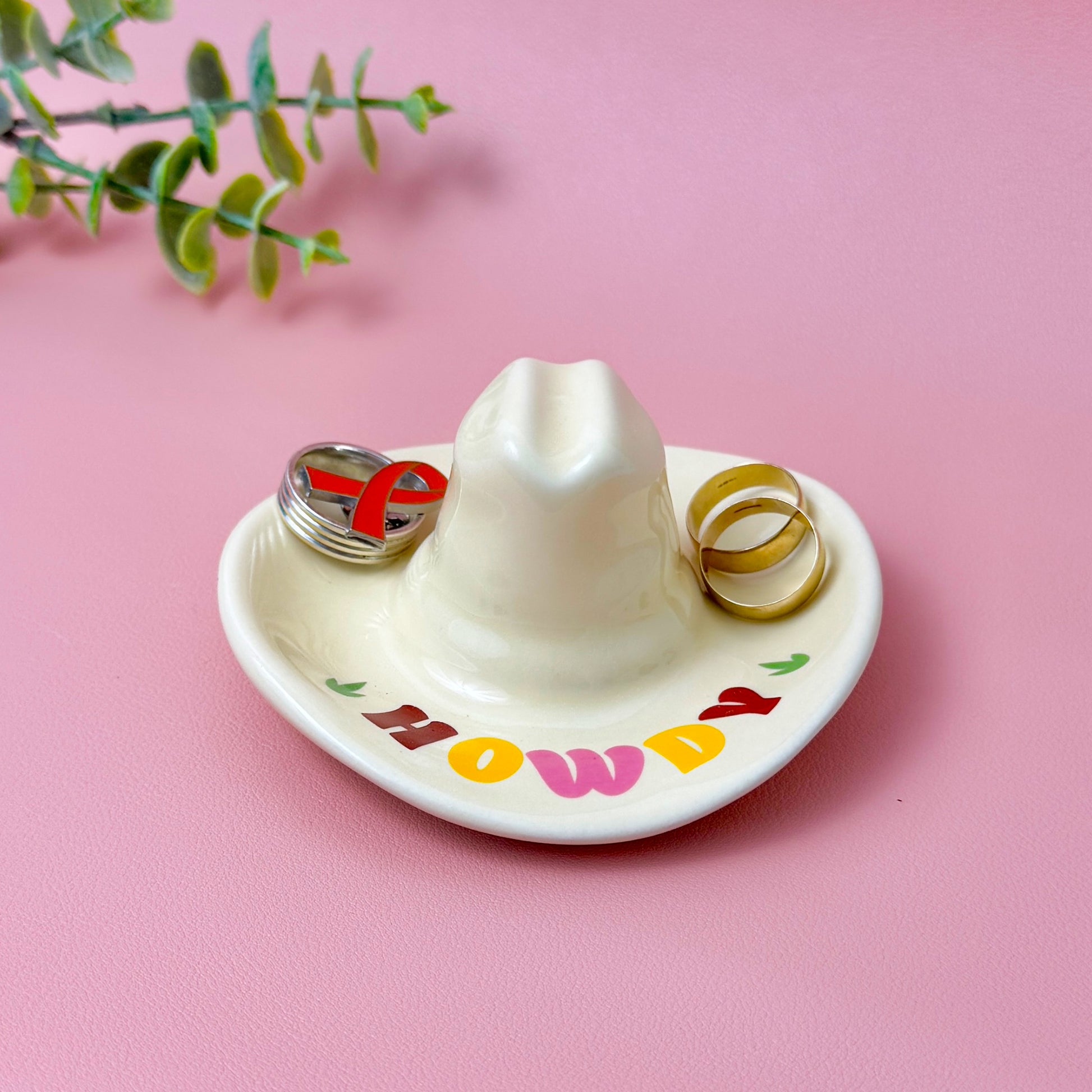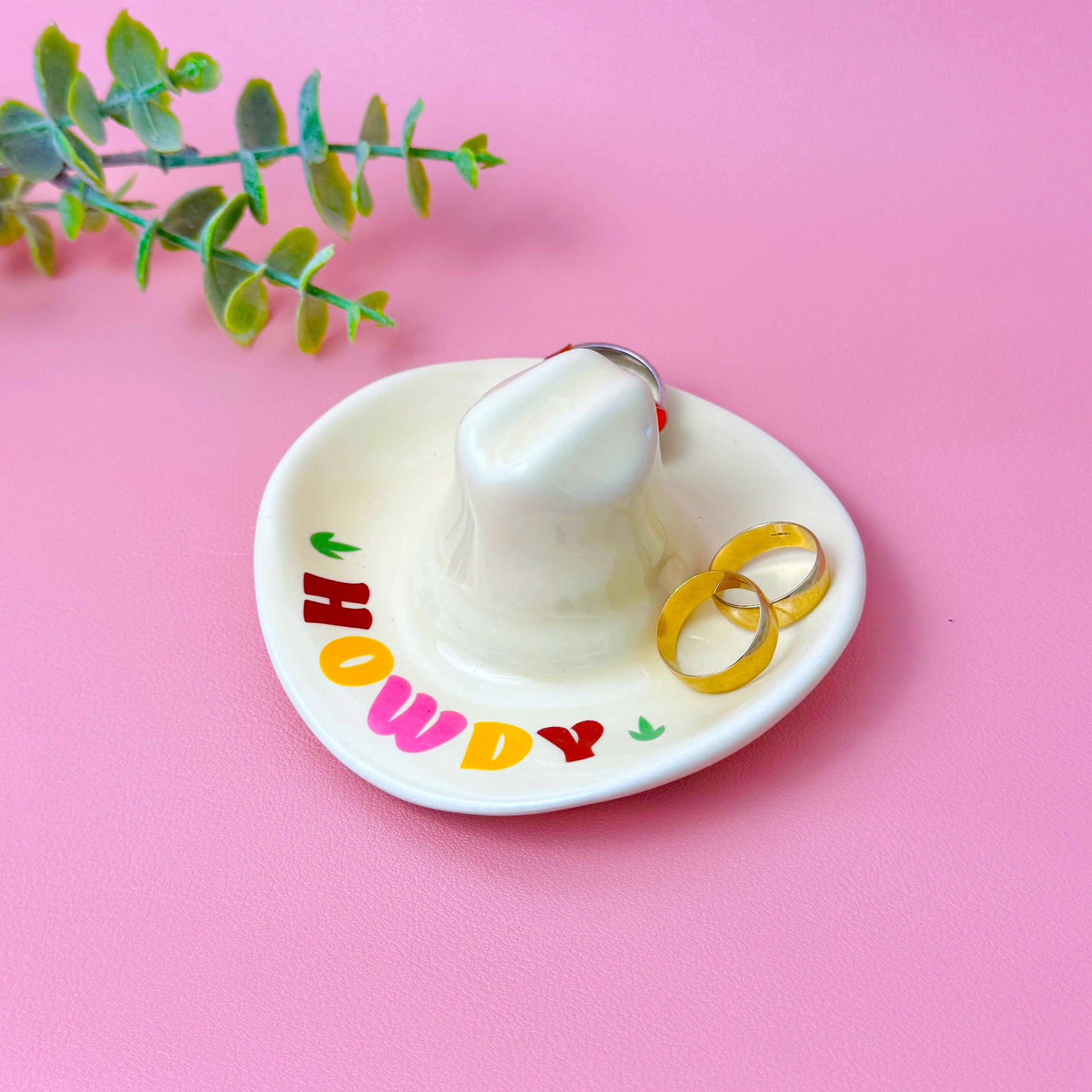 Add a touch of the wild west to your home with our cowboy and cowgirl hat-shaped trinket tray – the perfect blend of rustic charm and functional design. This playful Western-style jewellery dish features a quirky “Howdy” message along the brim, making it a standout piece for country-themed décor or as a unique catchall tray.