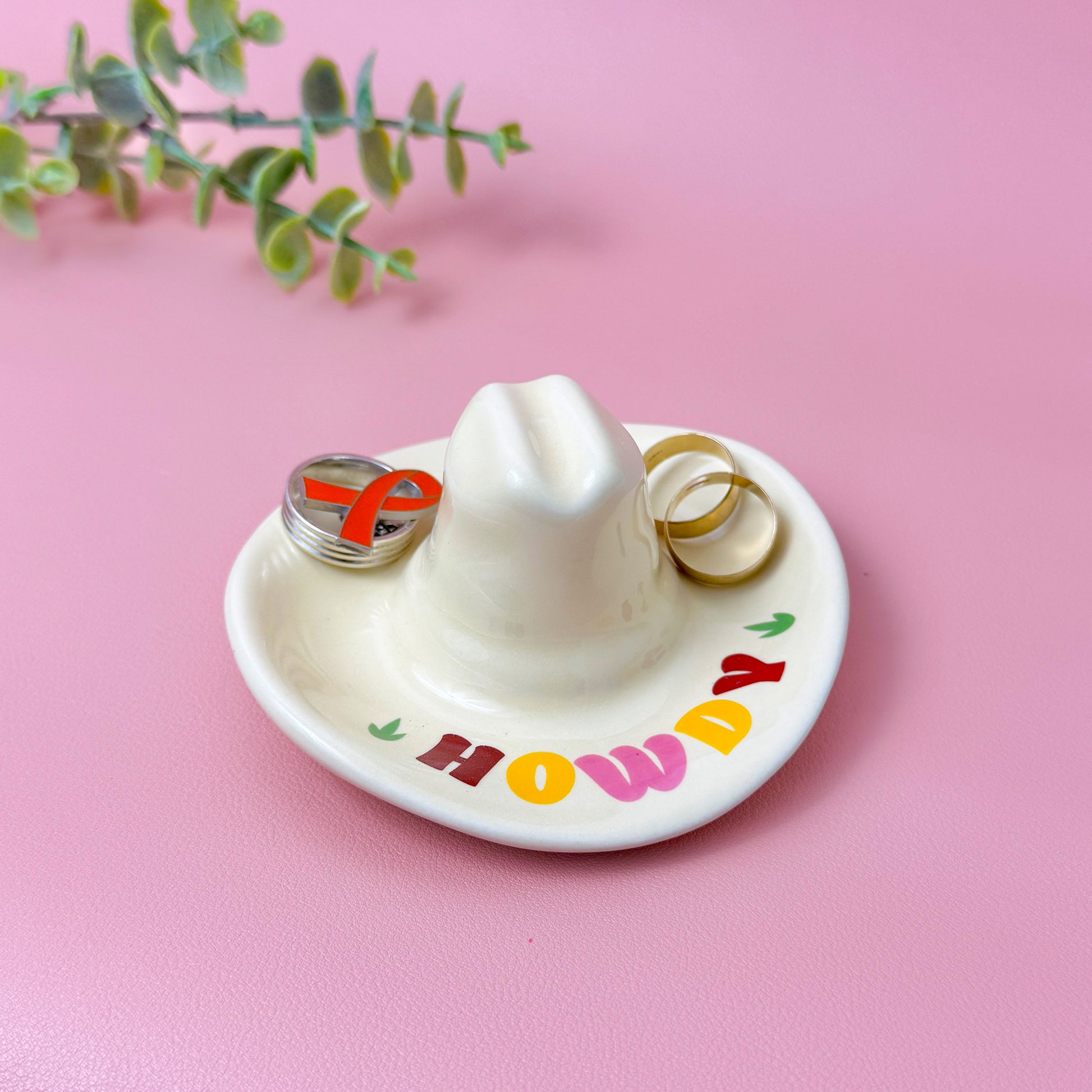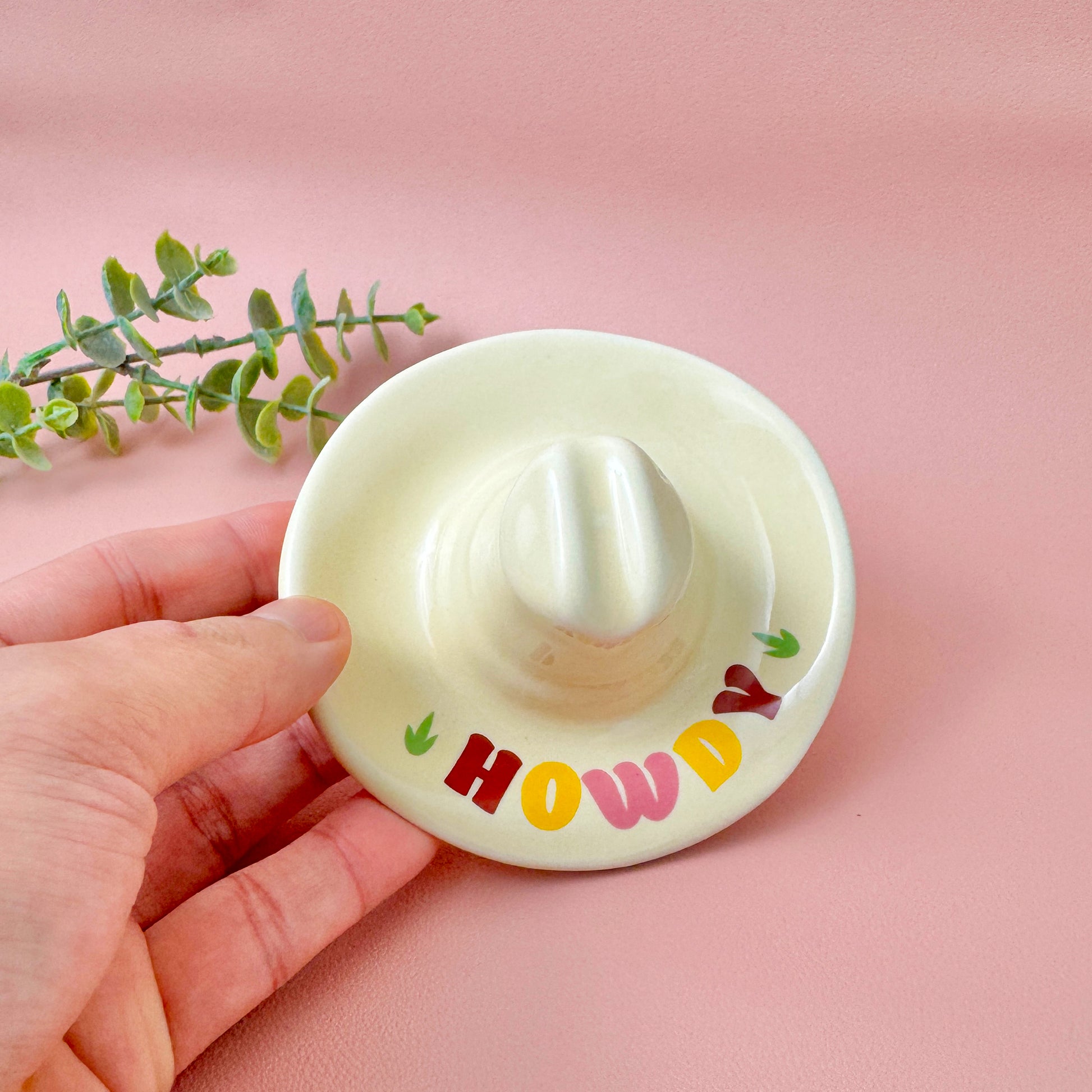 Whether you're storing rings, earrings, keys, coins, or small keepsakes, this cowboy hat ceramic trinket dish keeps your essentials organised and easy to find. It's perfect for use as a jewellery tray on your dresser, a key tray in your entryway, or a decorative catchall dish on your desk or nightstand.