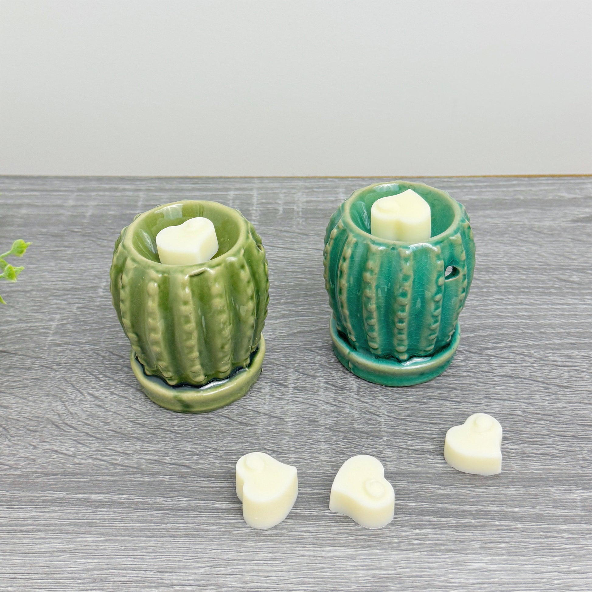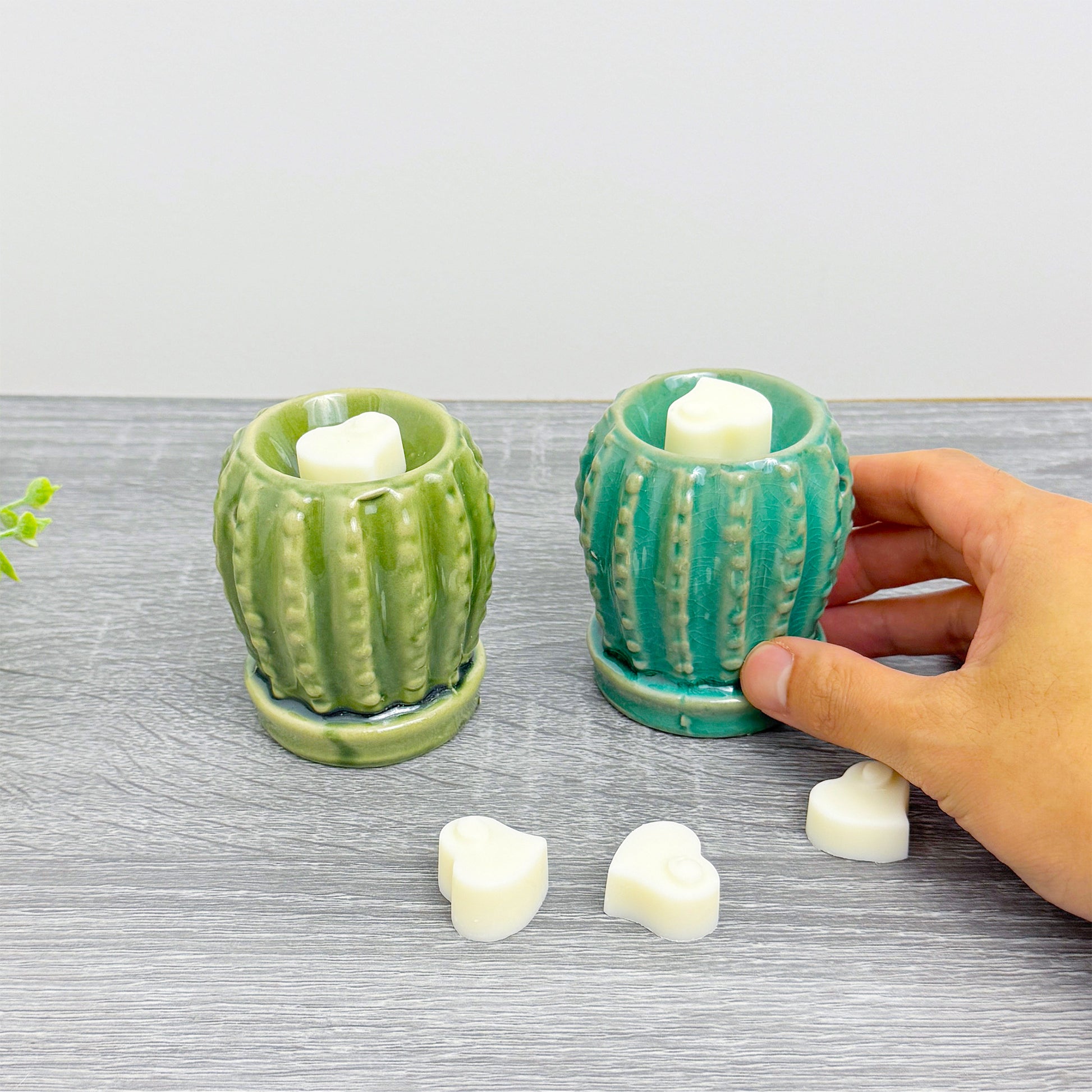 Cute Cactus Wax Burner with Wax Melts - Barrel Cactus Oil Burner Gift Set