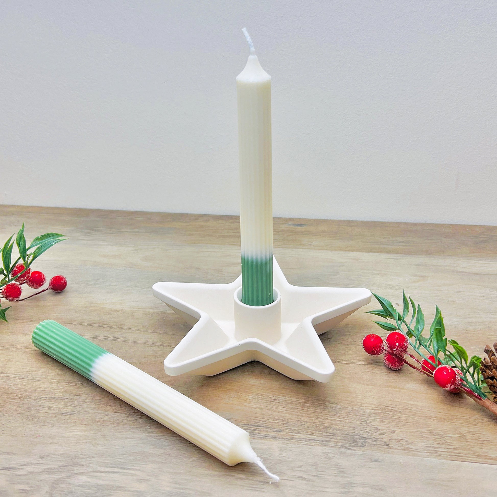 Green and White Two Tone Christmas Dinner Candles - Christmas Candlesticks