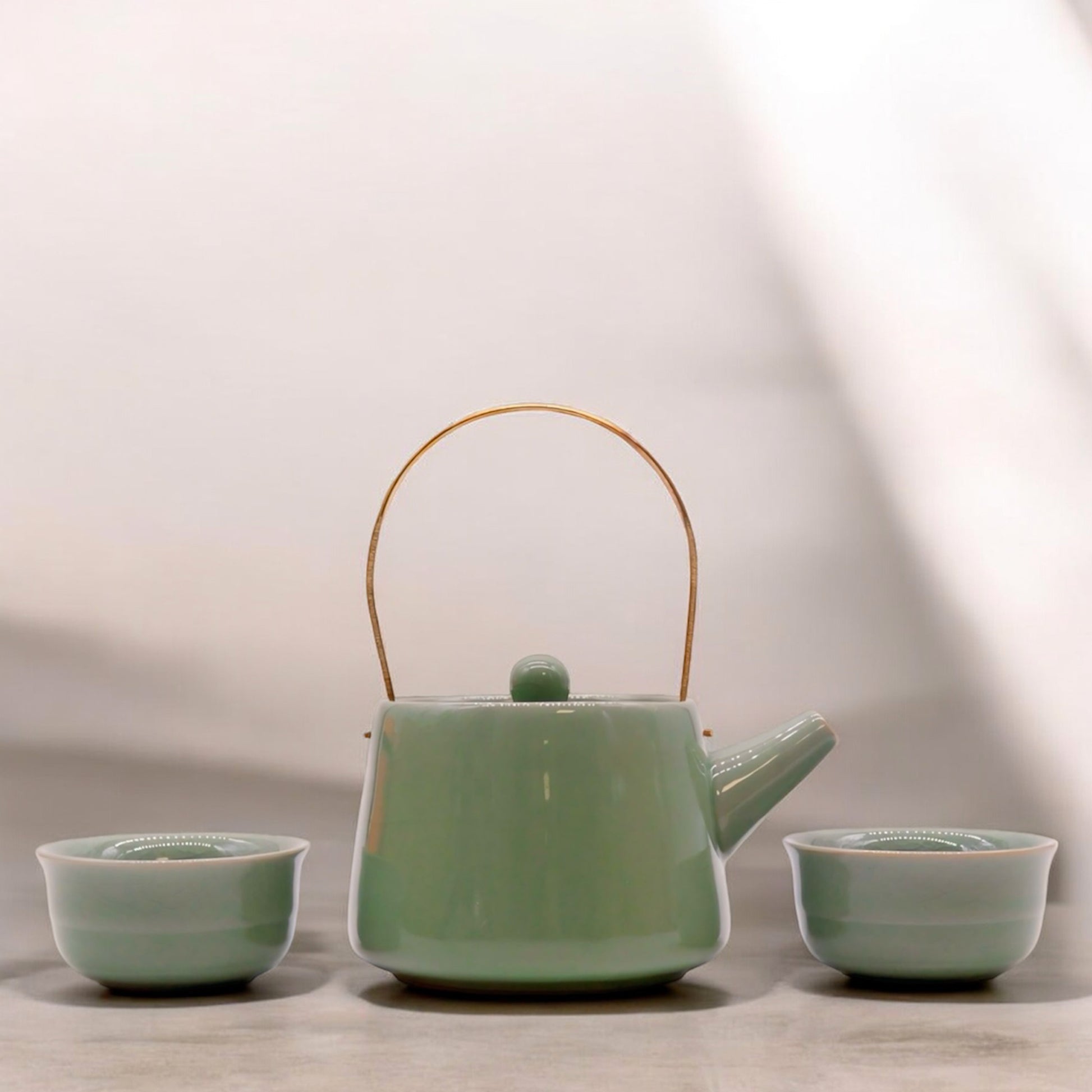 Herbal Tea Set with Teapot and Two Teacups - Jade Green Teaset - Loose Leaf Tea Pot