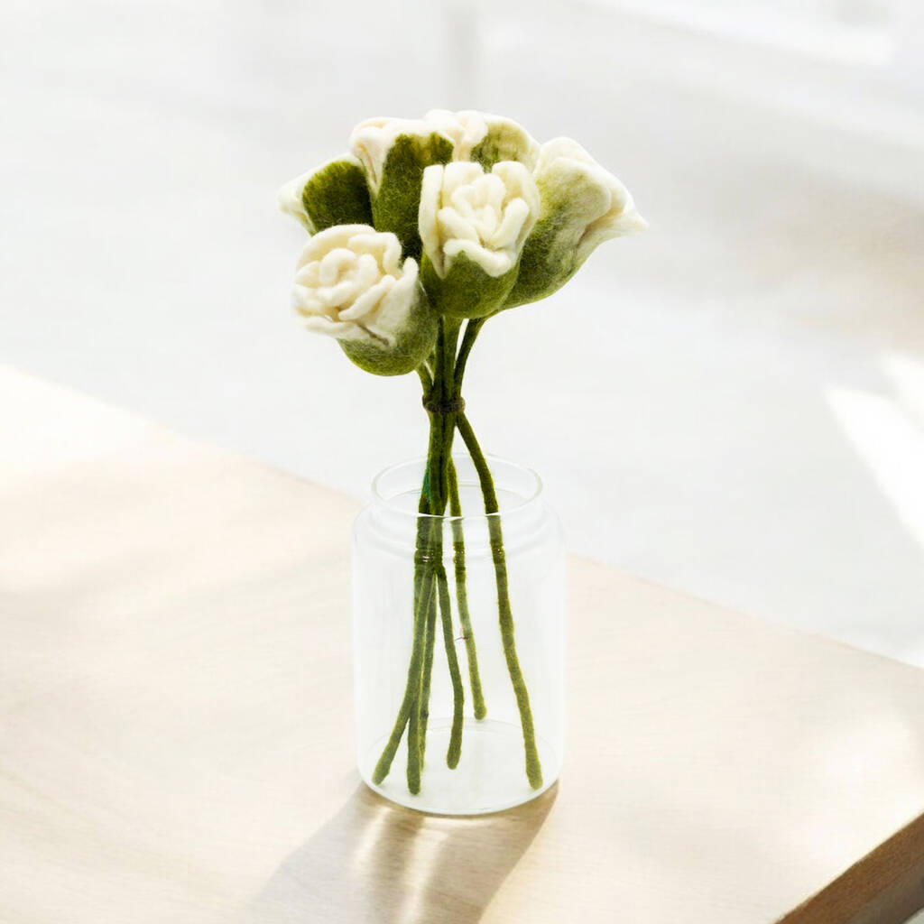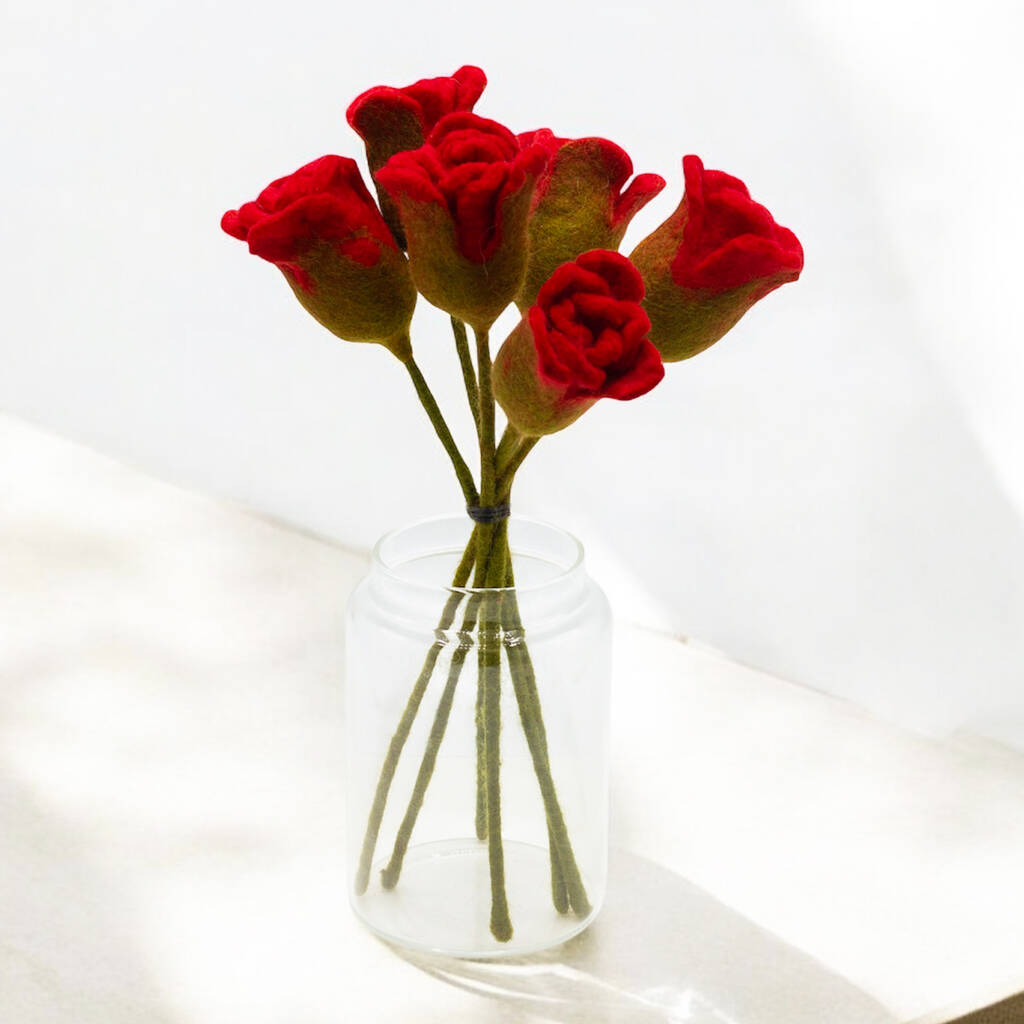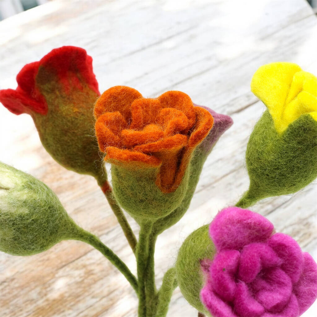 Surprise your loved one with our six felt flower bouquet! These faux flower bouquets are ideal for those who enjoy flowers without the upkeep, these unique floral gifts add the beauty of real flowers to any home. Perfect for rustic or modern homes, these flowers make a thoughtful Mother's Day or Valentine's gift. No need to keep changing or refreshing them, they're the perfect gift flowers for her!