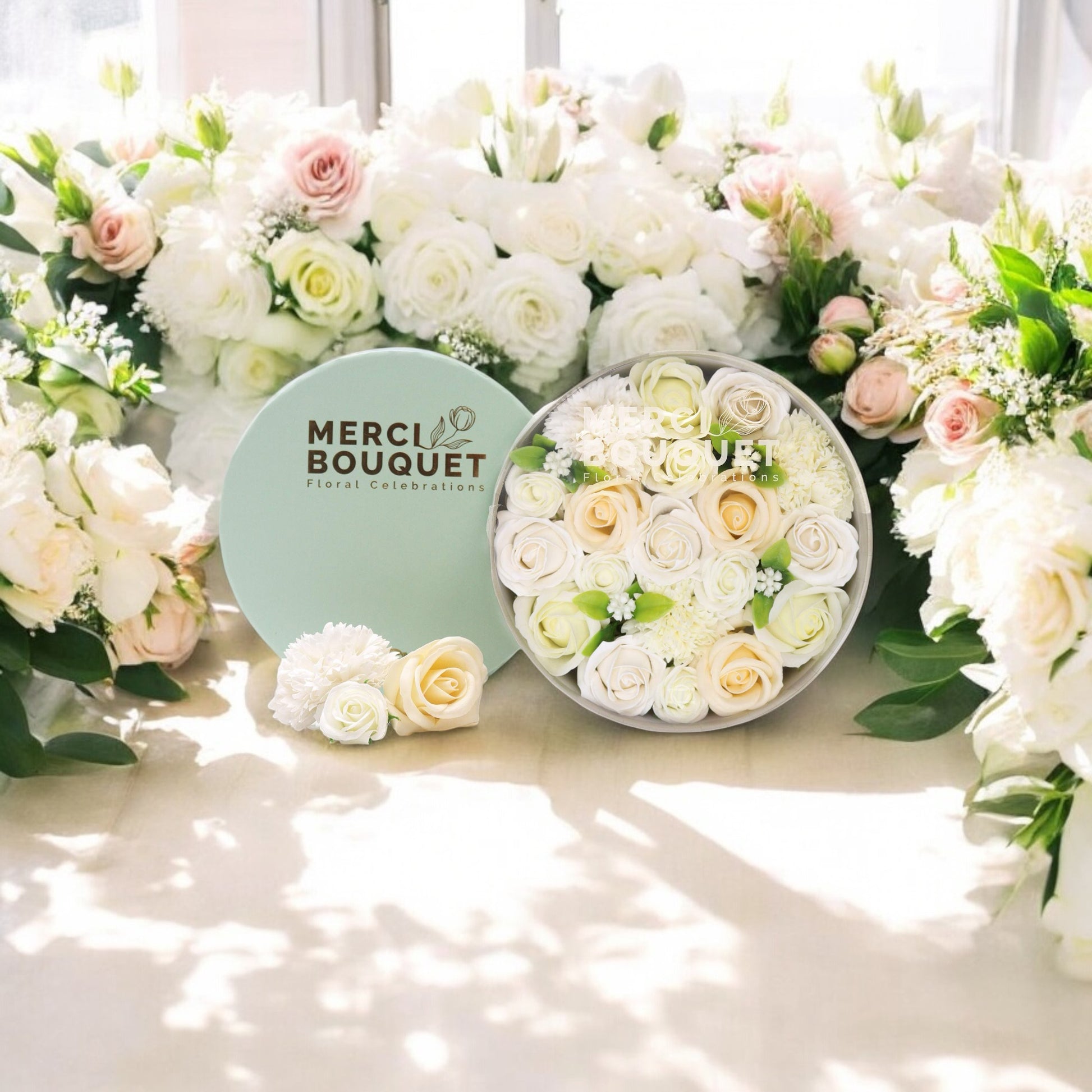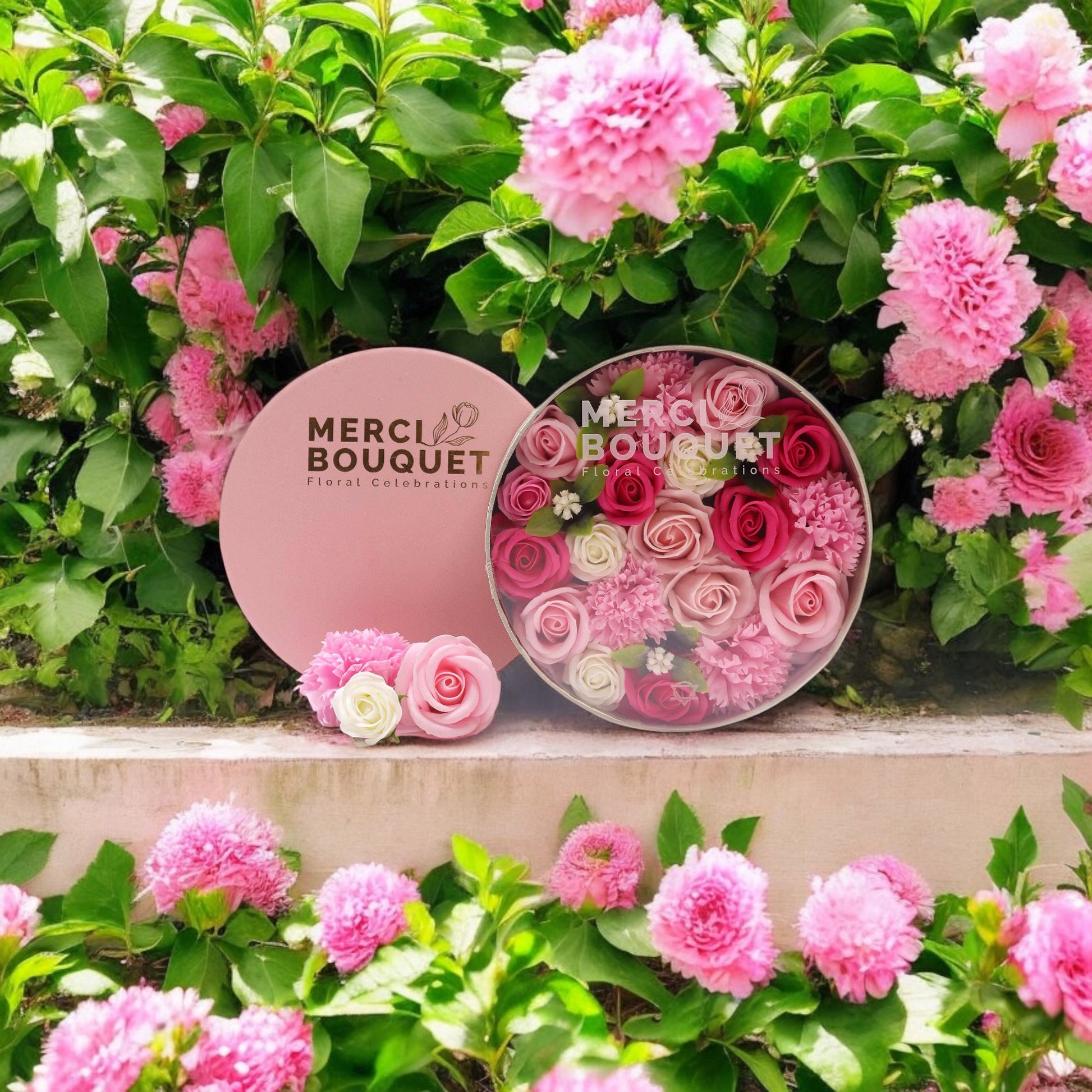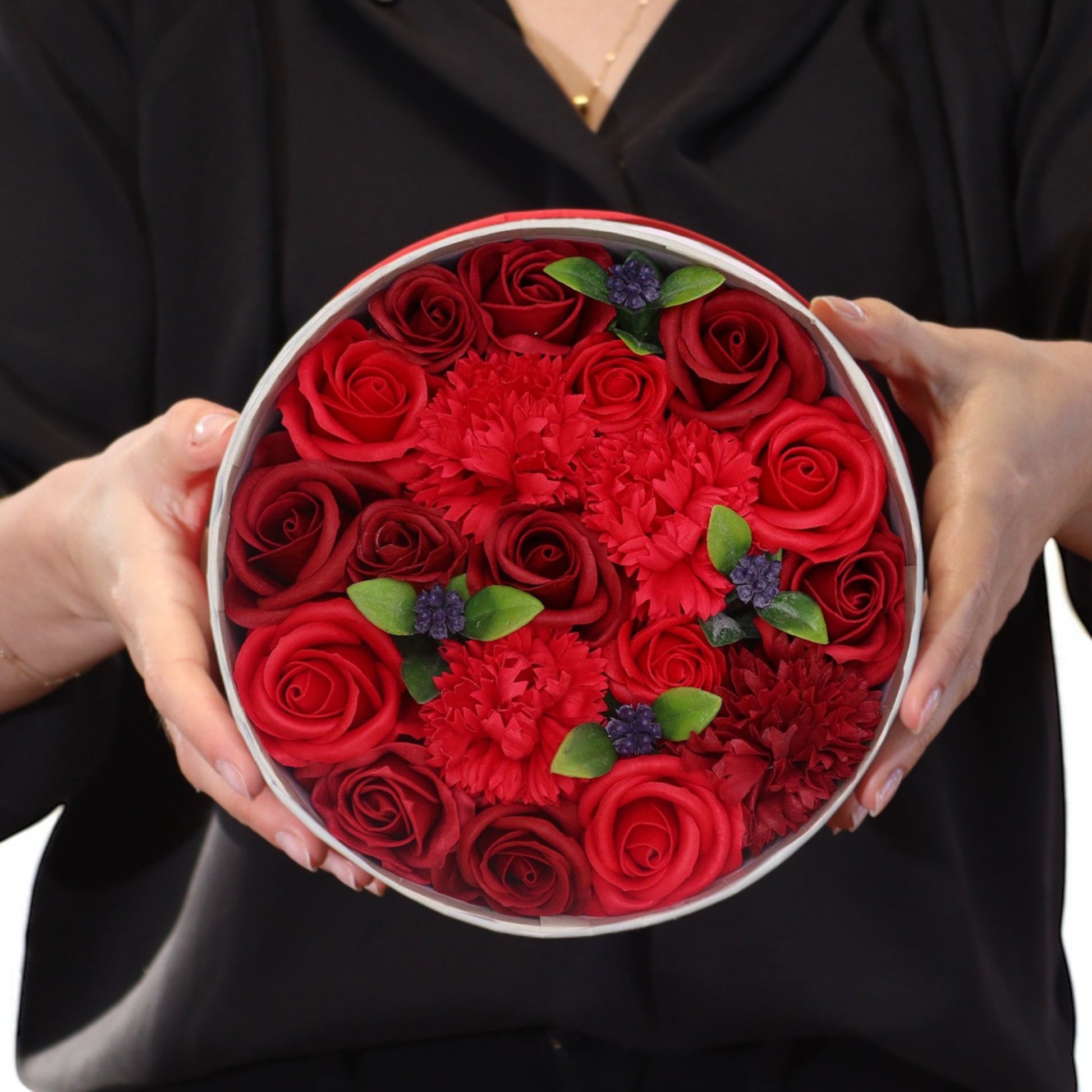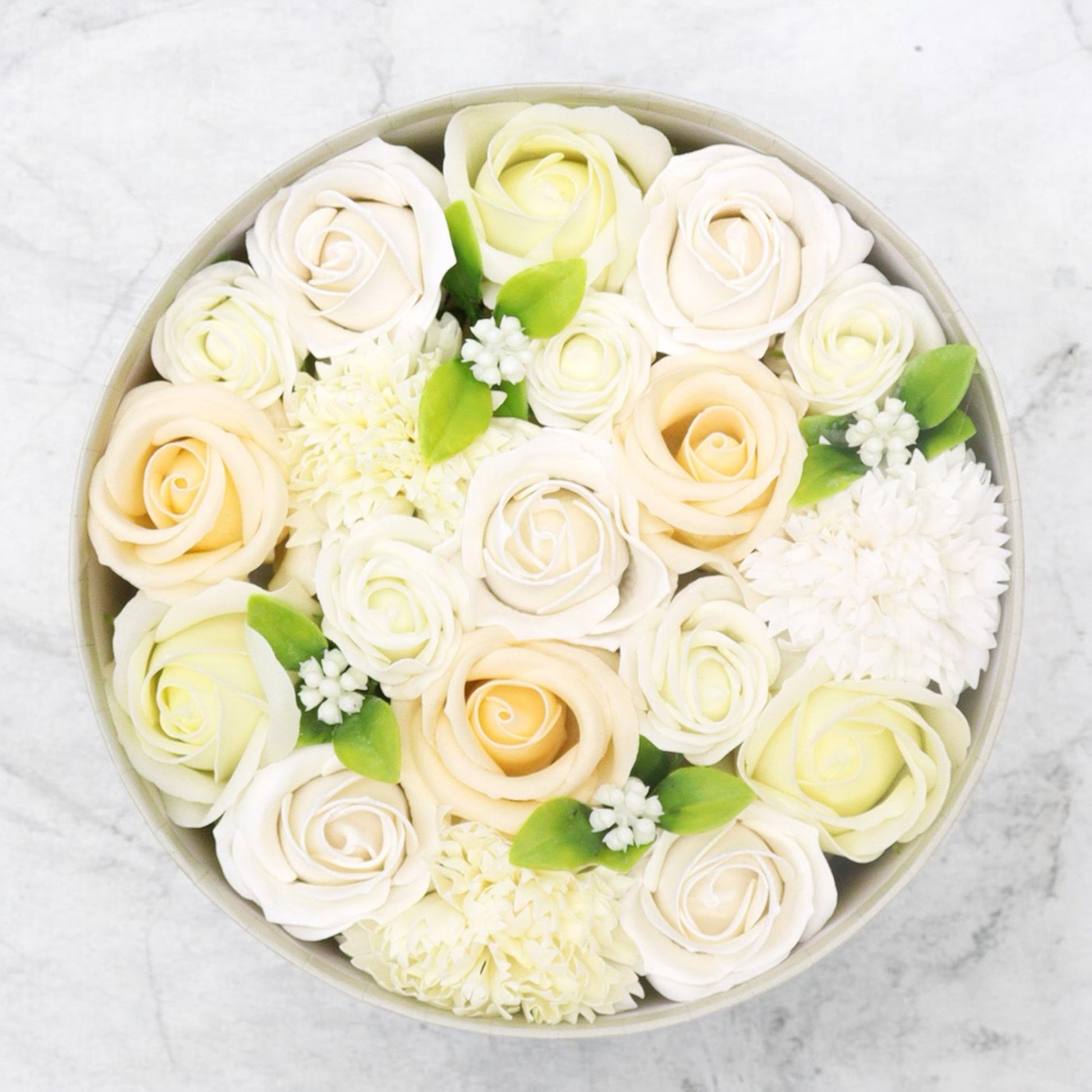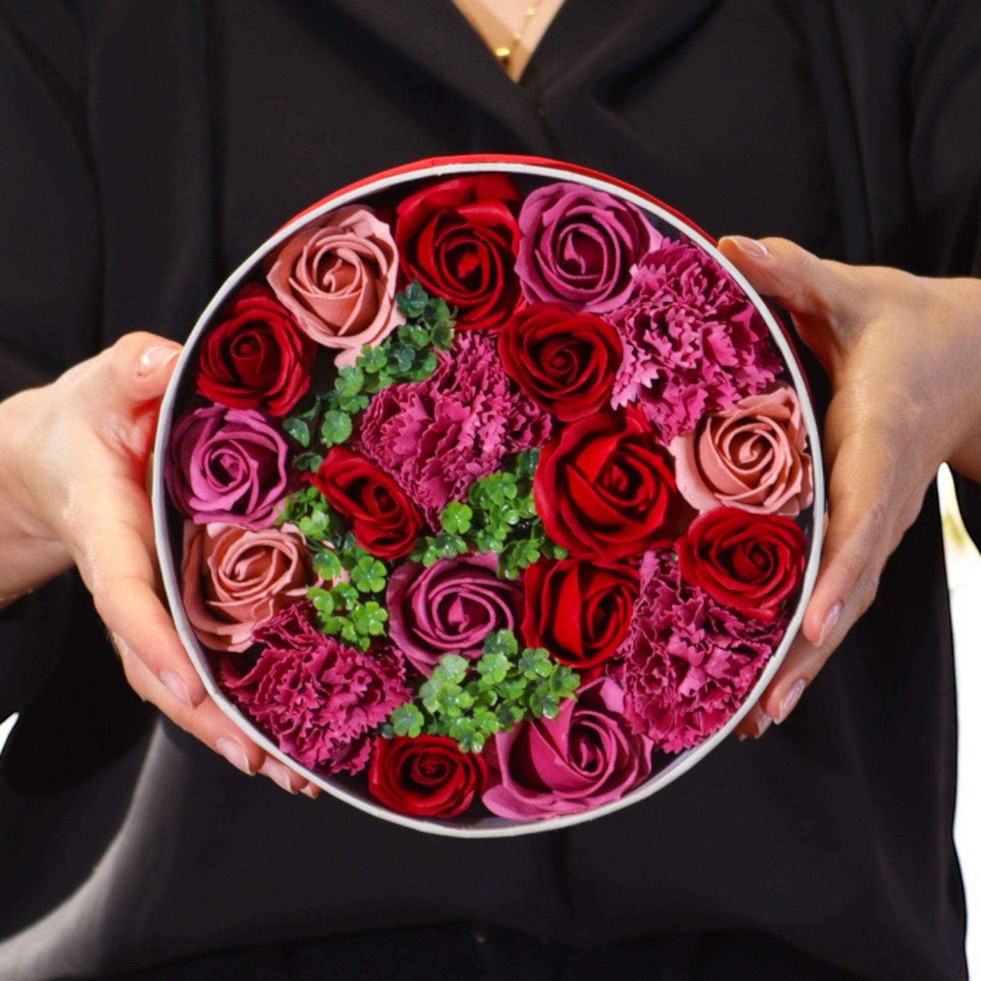 Our round soap flower gift sets are perfect bath bomb sets to give as Mother's Day gifts, anniversary gifts or wedding gifts. These handmade soap flower boxes contain a number of colourful flower shaped soap bath bombs in a lovely gift box. These bath gift sets are thoughtful gifts for your wife or girlfriend and make great self care gifts too.