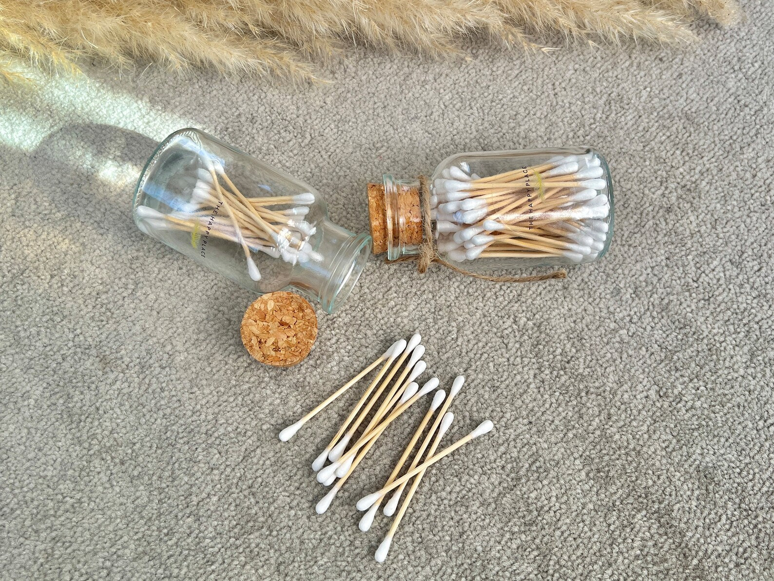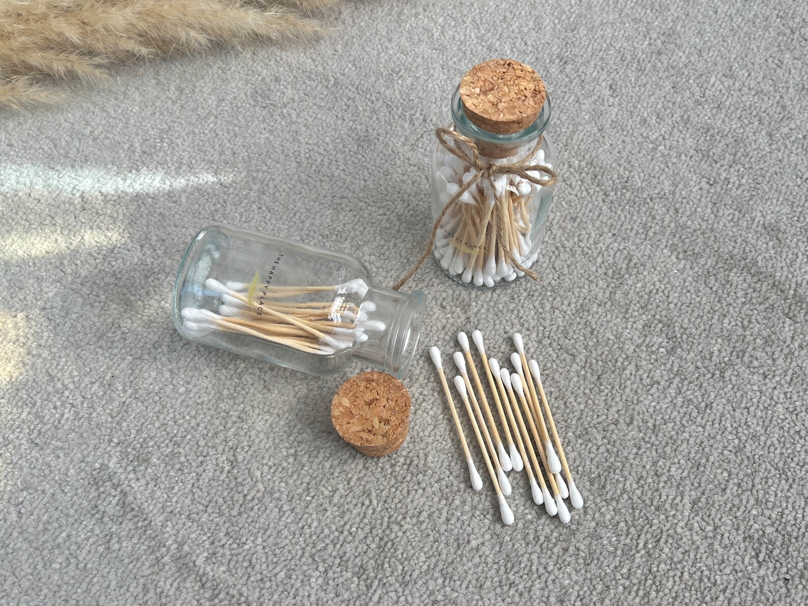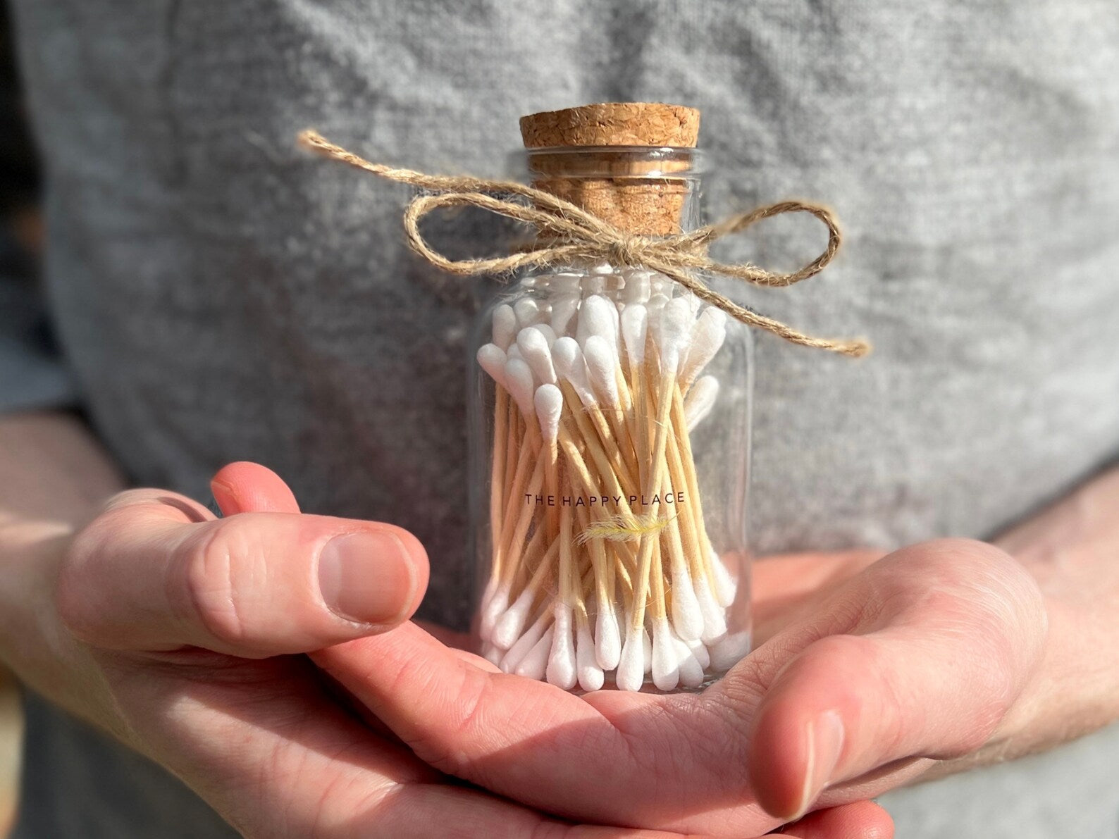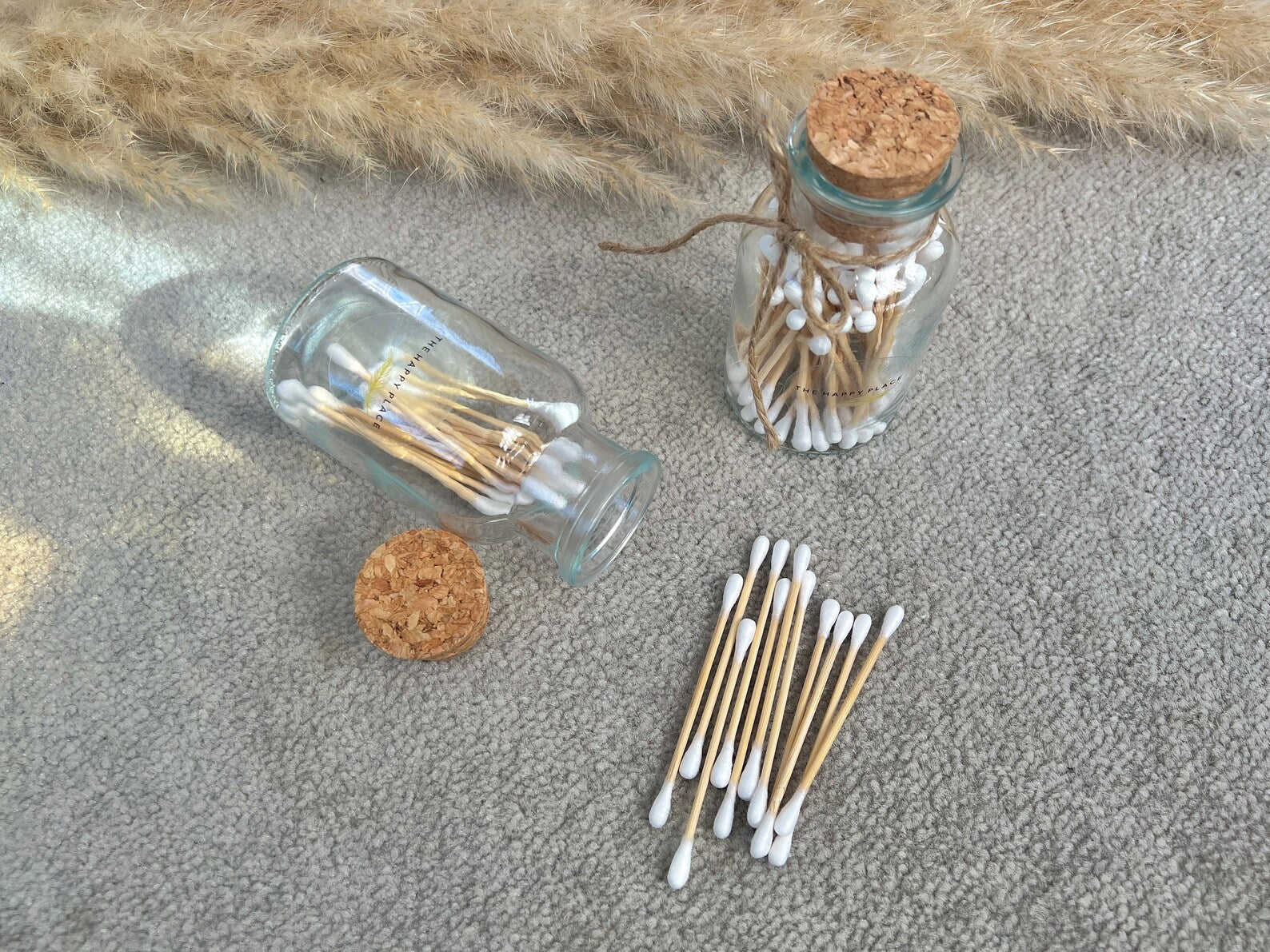Sustainable Bamboo Cotton Buds in Glass Jar