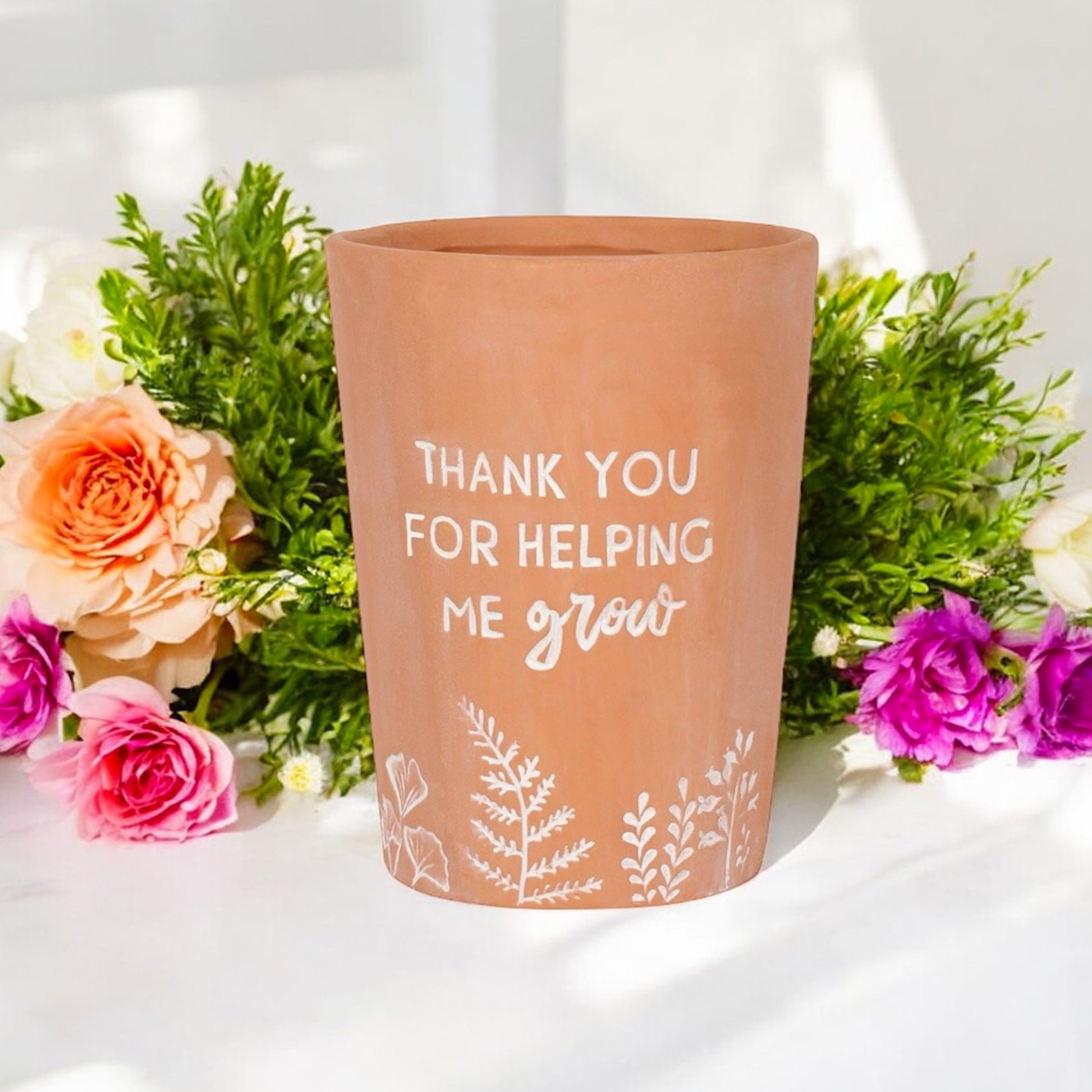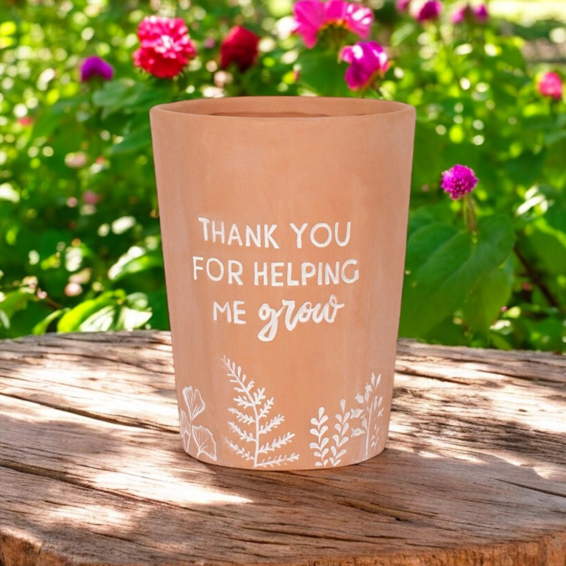 Show appreciation with this charming terracotta plant pot, engraved with the heartfelt message: “Thank You for Helping Me Grow.” Perfect as an end-of-term teacher gift, this small plant pot makes a meaningful keepsake for teachers, teaching assistants, or mentors who’ve made a difference.