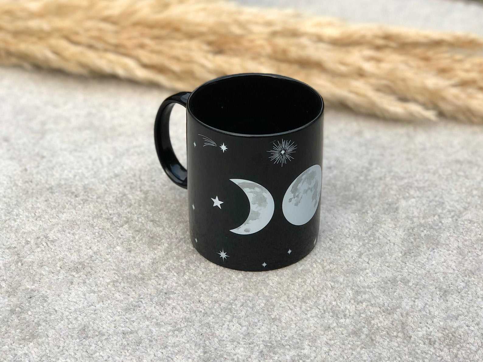The mug come with a sturdy handle and is both dishwasher and microwave safe as well. The mug has a lovely sleek black finish and the white of the moon phases and stars really stands out against it, making the mug even more striking and beautiful.