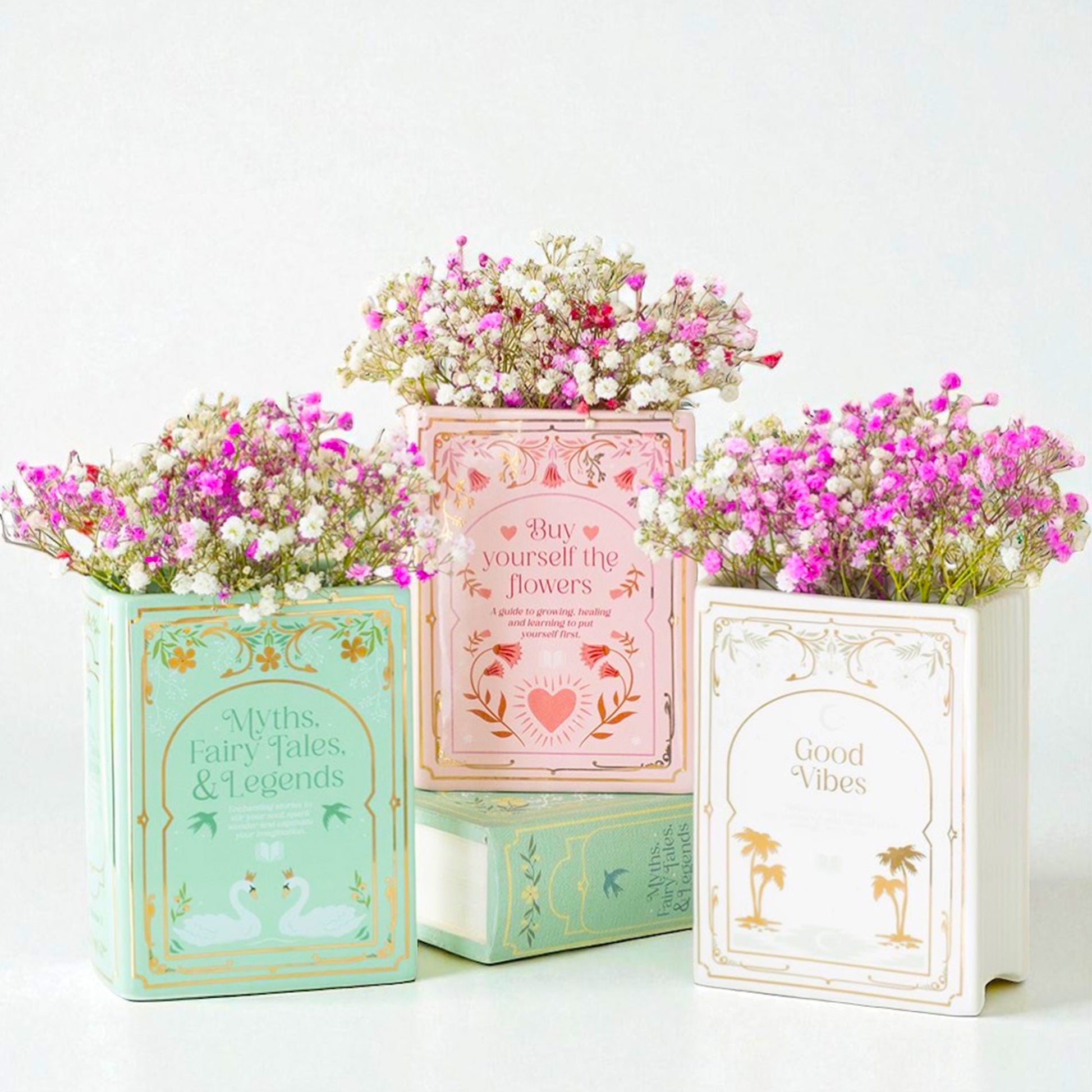 Ideal for both fresh and dried flowers, this 600ml ceramic flower vase is a unique decorative vase that will enhance any bookshelf, desk, or reading nook. Its thoughtful design makes it the perfect gift for book lovers, for a self care gift or anyone in need of a little extra positivity.