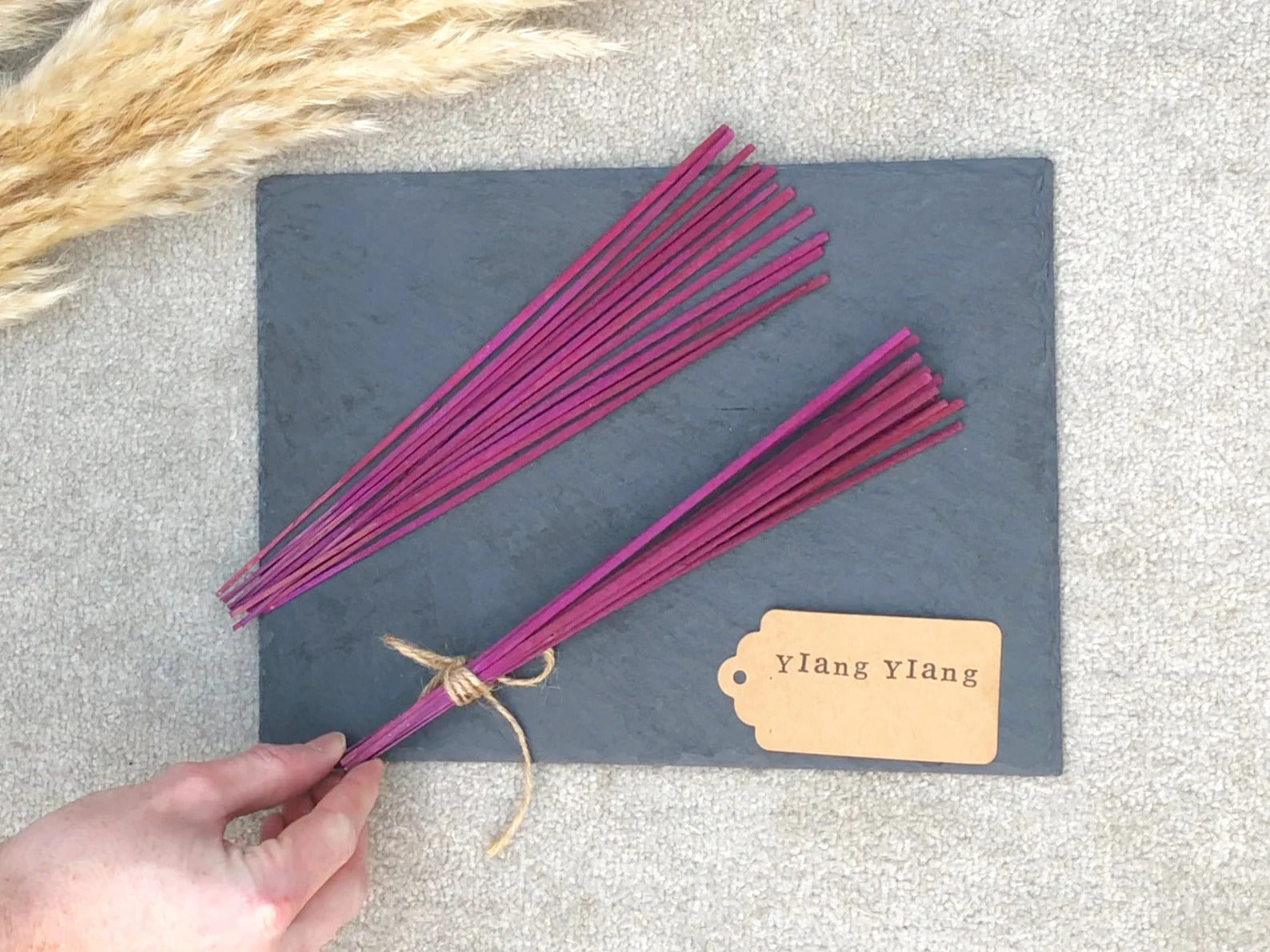 The incense has all been rolled by hand with each individual incense stick being handmade from all natural ingredients and fragranced using pure ylang ylang essential oil to give it a high aroma level.