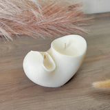 These unique candles have a wonderful curved shell shape with gentle ridges running through the design. The candles have a double wick.